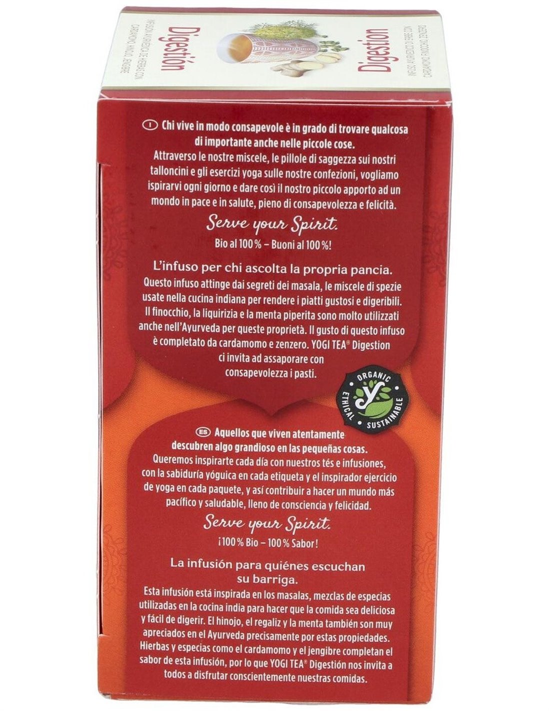 Yogi Tea Digestión 17 x 1,8 g de Yogi Tea es una infusión diseñada para personas que buscan una opción natural para acompañar sus momentos de relajación después de las comidas. Su fórmula combina ingredientes seleccionados para favorecer una sensación de bienestar digestivo.