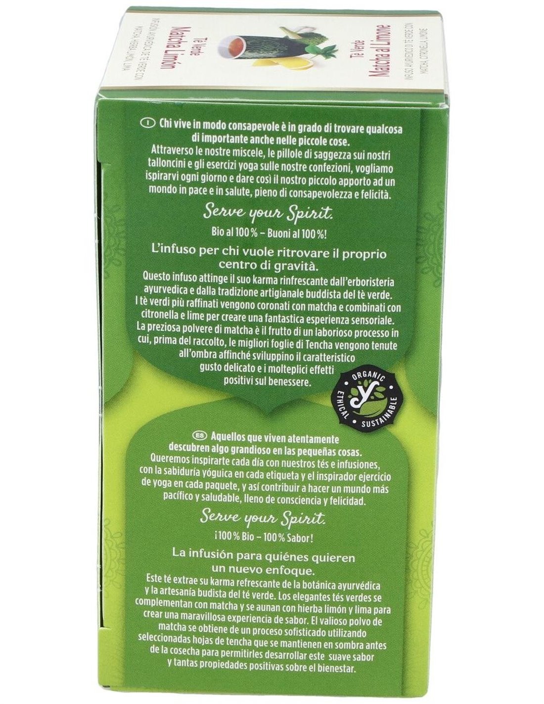 El producto está elaborado con ingredientes seleccionados para mantener la calidad y frescura en cada bolsita. Su diseño en sobres individuales permite una infusión práctica y rápida, ideal para preparar en casa o en el trabajo. La combinación de té verde matcha y limón ofrece un perfil aromático que se adapta a diferentes momentos del día.