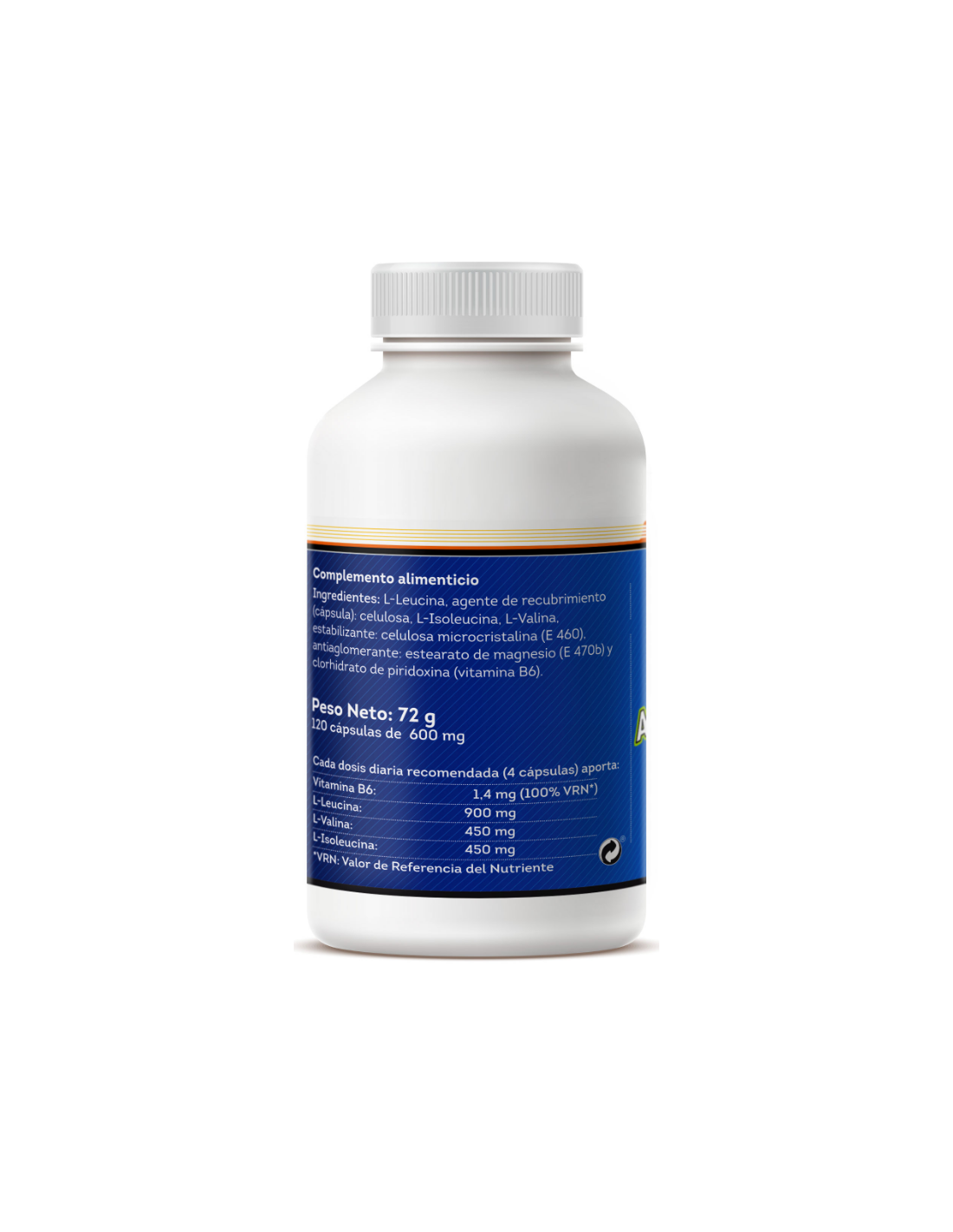 El producto está elaborado con ingredientes seleccionados para asegurar una composición estable y adecuada para su consumo habitual. Su formato en cápsulas permite una dosificación precisa y cómoda, ideal para quienes buscan complementar su alimentación con aminoácidos ramificados sin añadir volumen extra a su dieta.