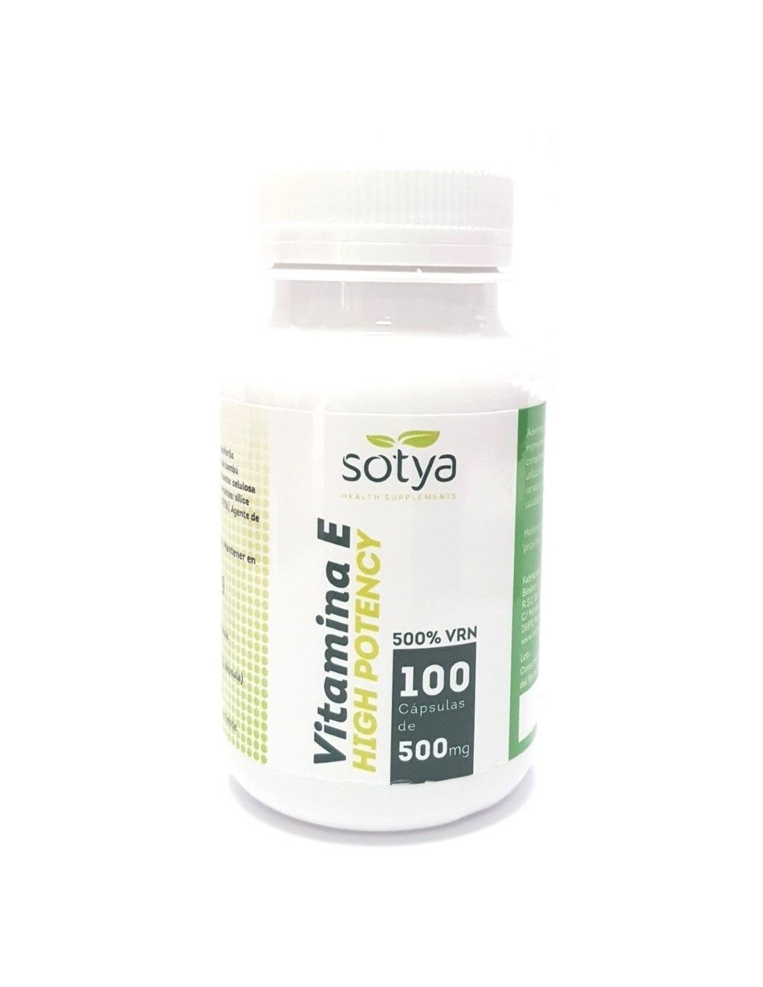La Vitamina E High Potency 500Mg Cáps. 100U de Sotya es un suplemento para personas que buscan apoyar la salud celular, ofreciendo una dosis concentrada de vitamina E en cápsulas fáciles de consumir.