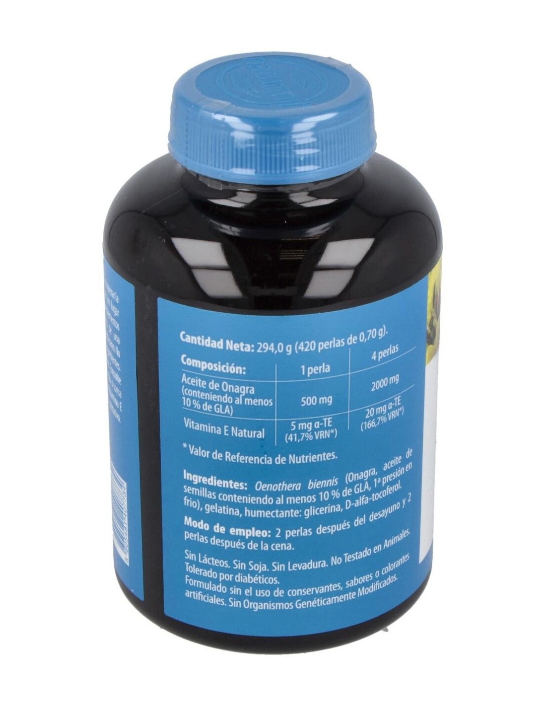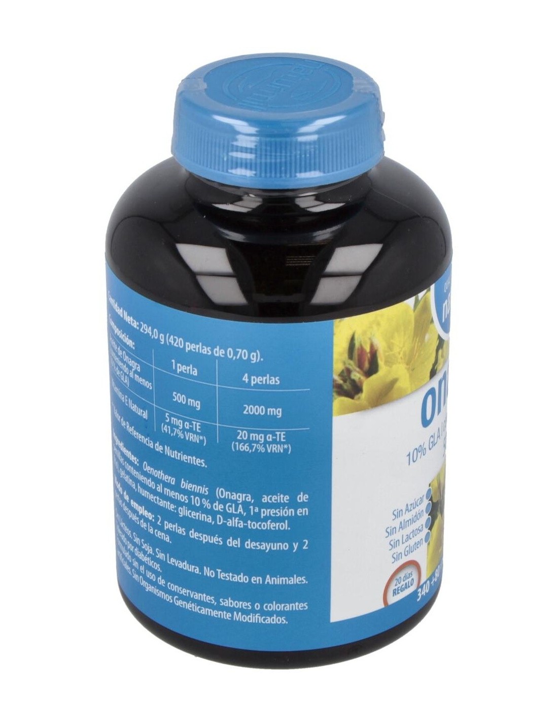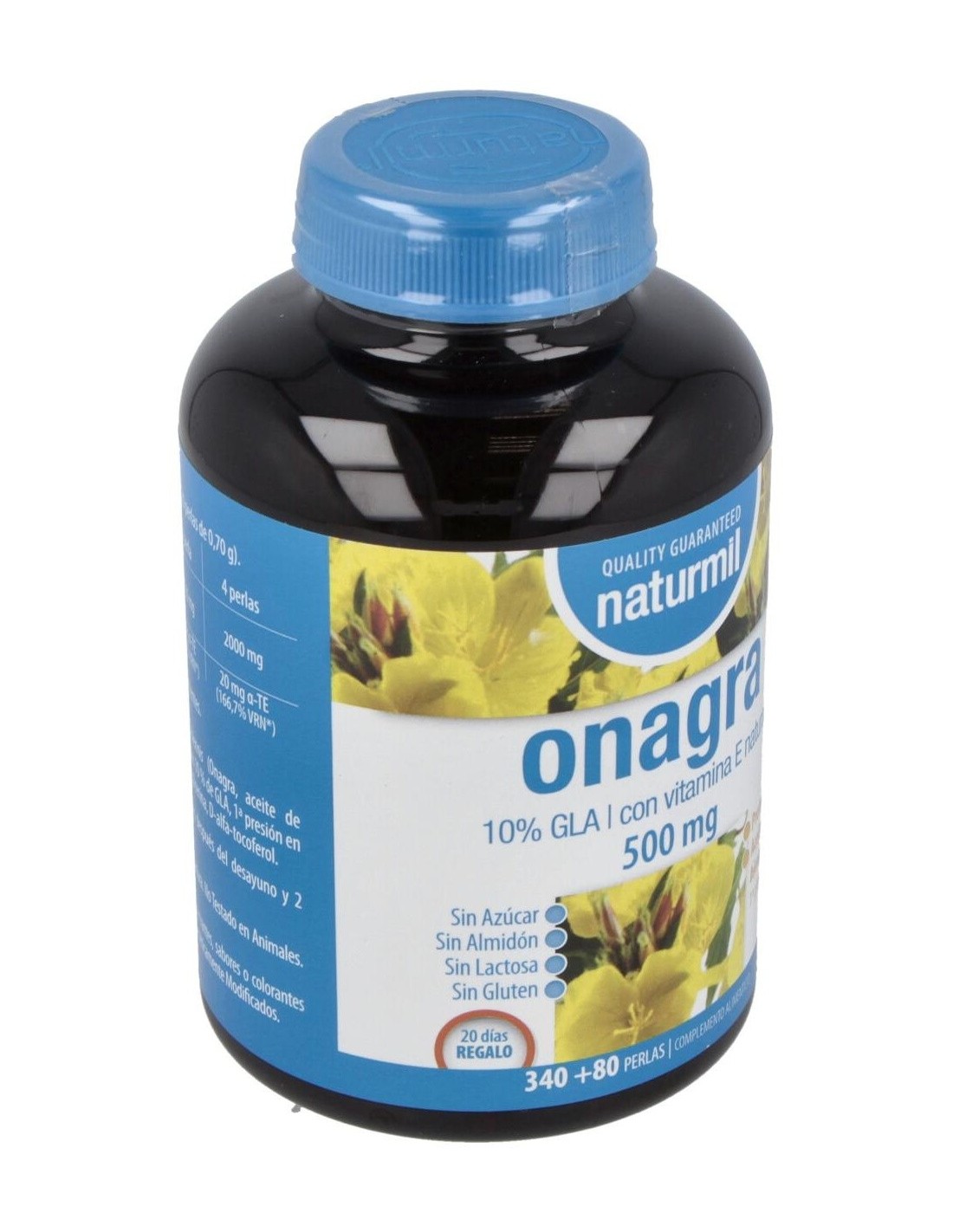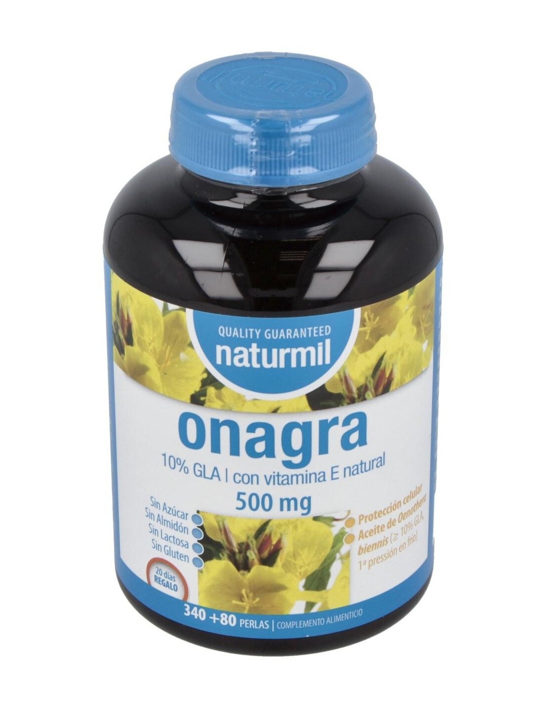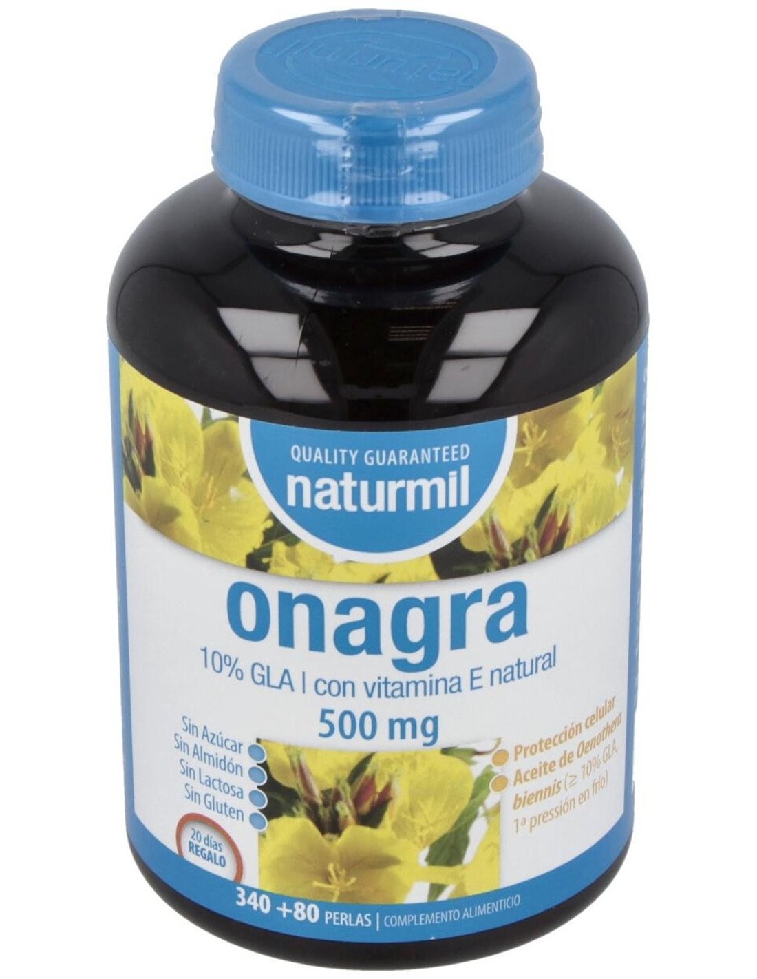 - Cada perla contiene 500 mg de aceite de onagra, aportando una fuente natural de ácidos grasos omega-6.