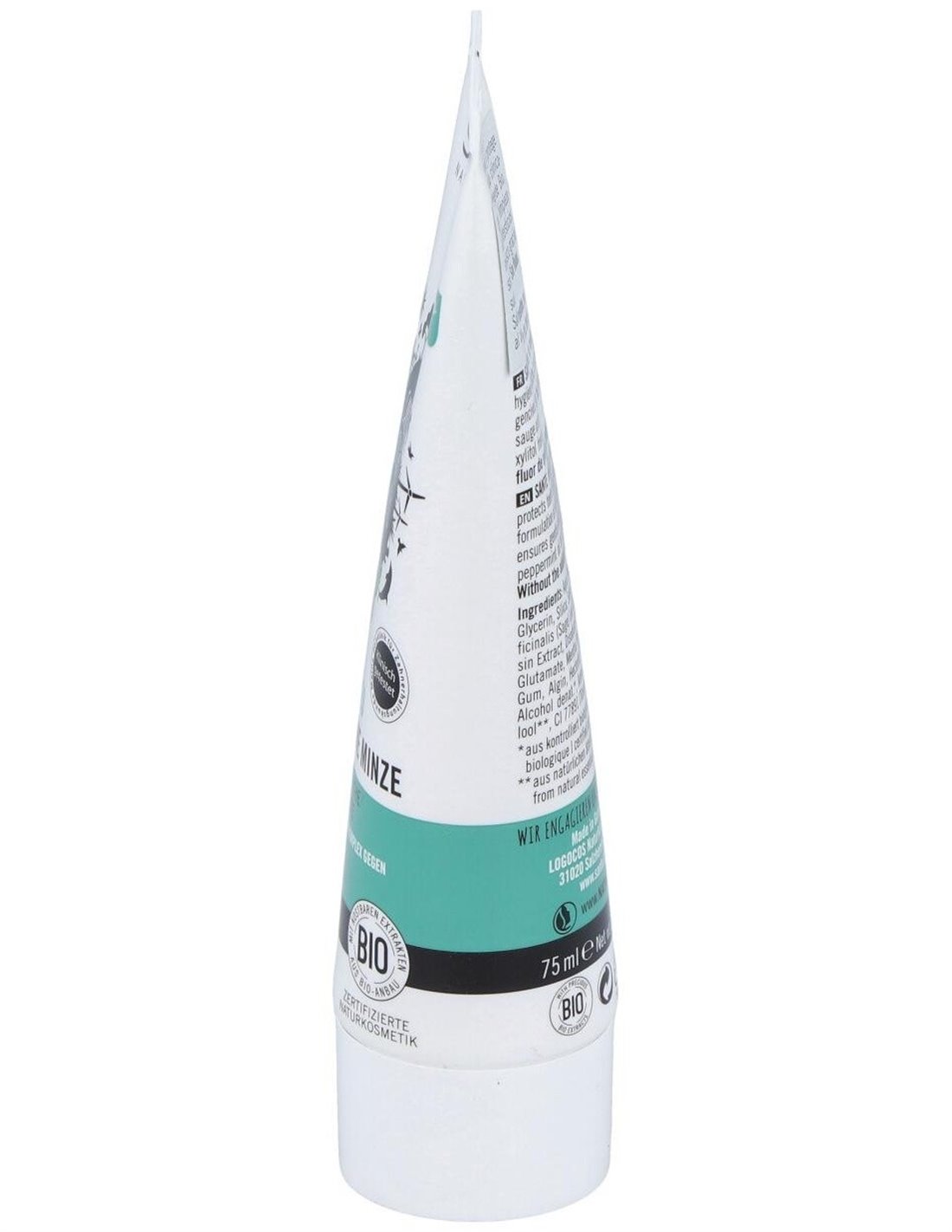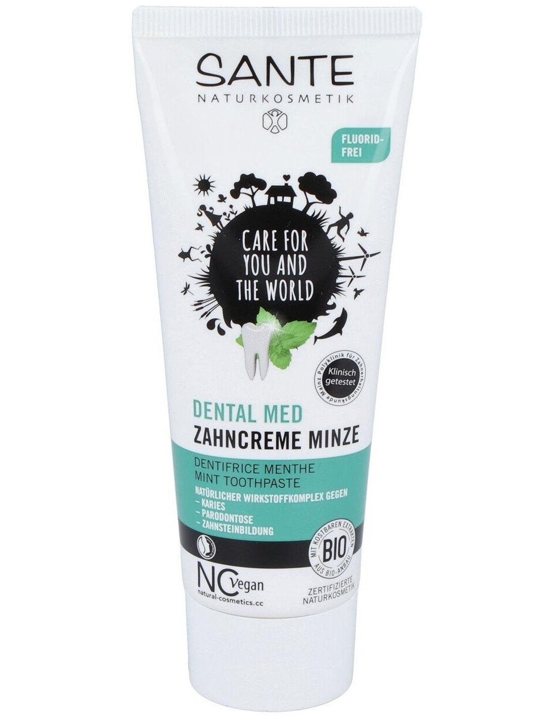Para higiene bucodental y aliento fresco con aceite de menta. Este dentífrico de menta sin flúor cuida y protege los dientes y encías con un complejo de principios activos a base de menta salvia y mirra. De agradable y refrescante sabor. Sin gluten. Apto para veganos. Cosmético ecológico certificado con los sellos BDIH y NaTrue.