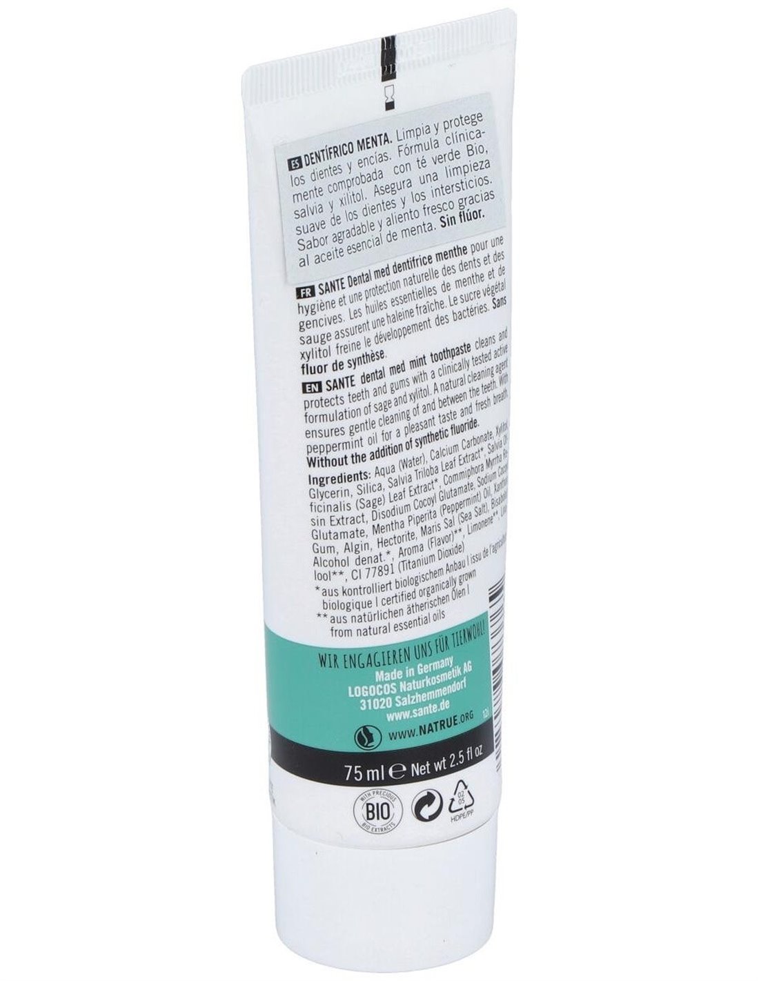 Dentifrico Menta Sin Fluor 75Ml. de Sante Naturkosmetik