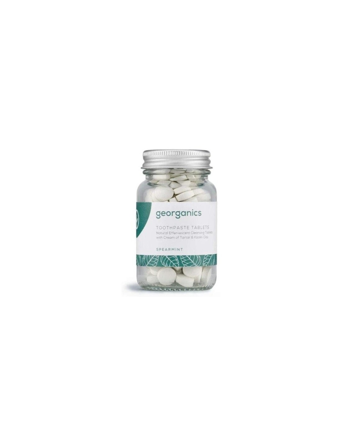 GEORGANICSUna forma limpia de cepillarse los dientes, estas tabletas dentales minerales están hechas con polvos ricos en minerales como el carbonato de calcio y la arcilla de caolín. Utilizadas a diario como reemplazo de la pasta de dientes tradicional, estas tabletas limpiadoras y reductoras de placa evitan enviar aproximadamente 8 tubos de plástico al vertedero en un año. Saborizado con aceite de menta verde orgánico por su delicado aroma a menta y propiedades antisépticas. Sin flúor, SLS ni glicerina. Producto vegano.
