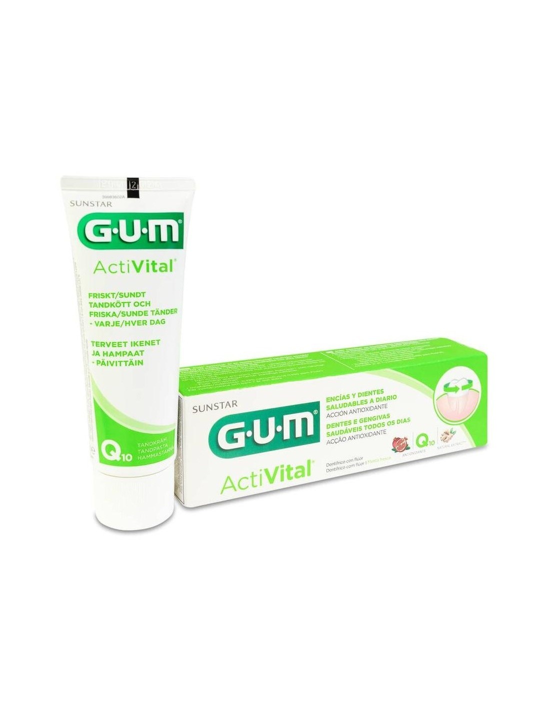 La pasta de dientes antiplaca GUM ActiVital se ha diseñado especialmente para eliminar la placa, prevenir su formación y proteger las encías a largo plazo. Acción antioxidante gracias a la coenzima Q10 y al extracto natural de granada. Este dentífrico ofrece una acción antiplaca duradera gracias a un innovador ingrediente que absorbe las bacterias nocivas. Sabor a menta para un aliento fresco.