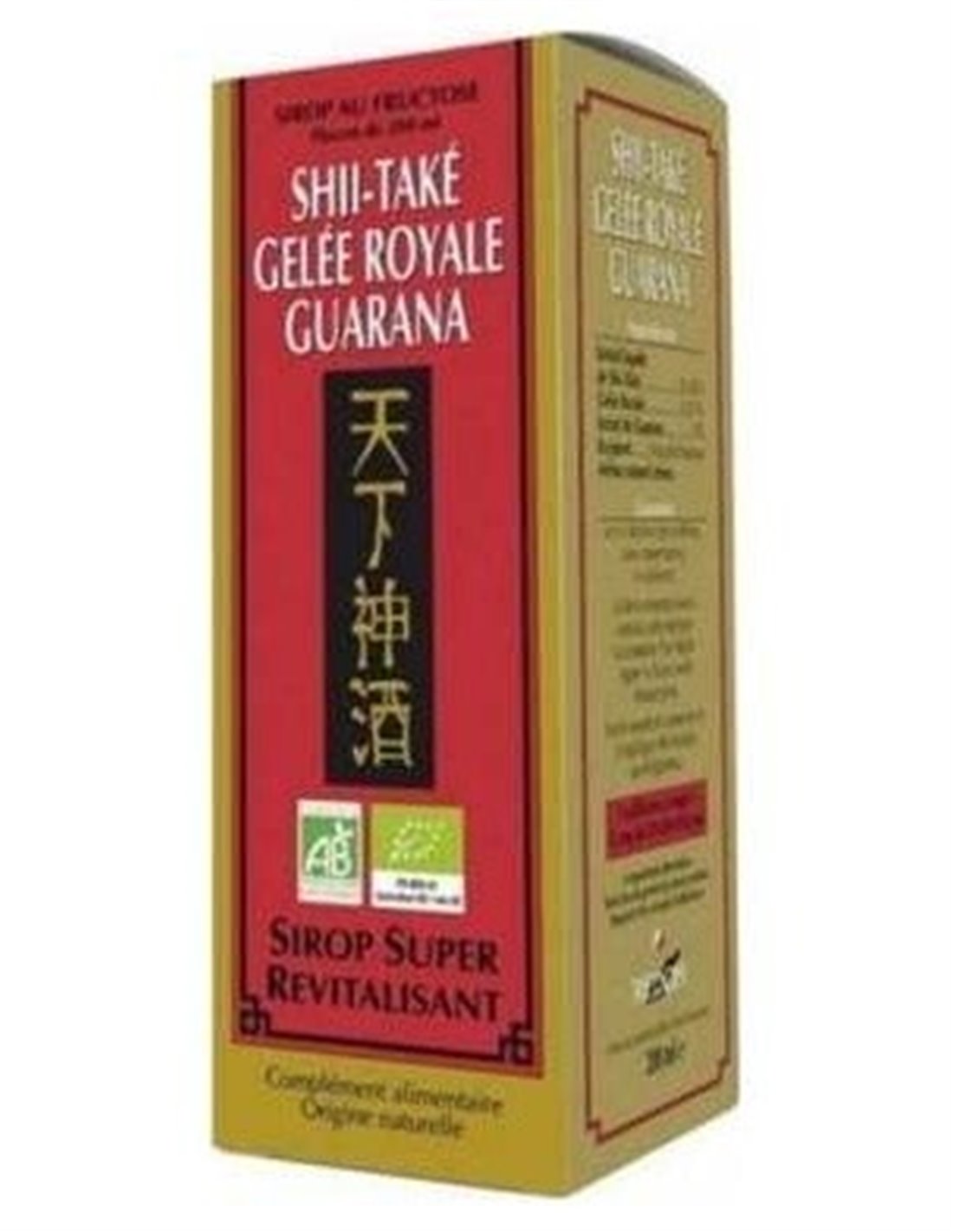 Jarabe que ayuda a restaurar el equilibrio y la vitalidad, a base de extractos de hongo shitake, jalea real y extracto de semillas de guaraná. Muy útil para disminuir la fatiga, y a restaurar el equilibrio, fuerza, vigor y vitalidad profunda.