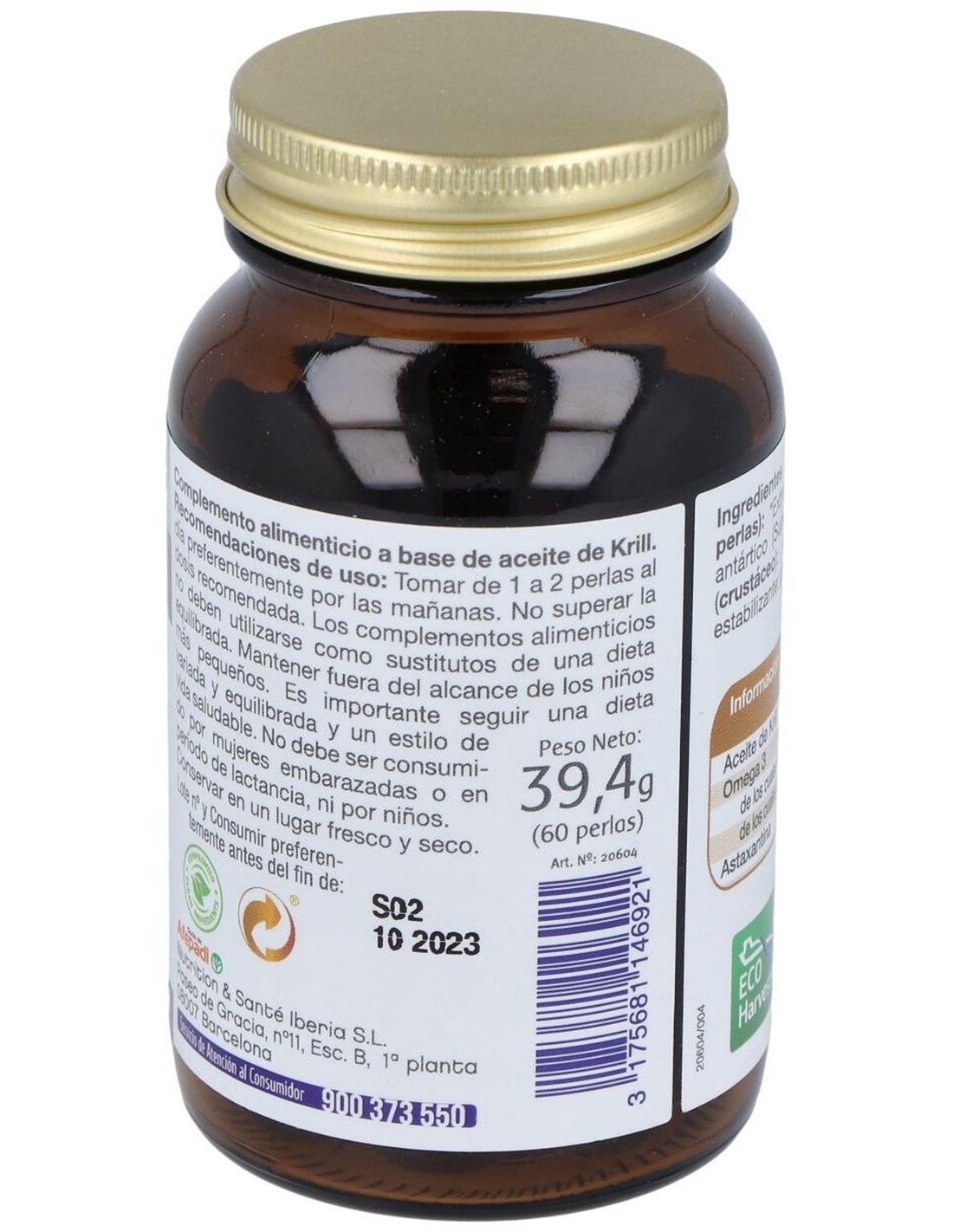 El aceite de krill utilizado en este suplemento proviene de fuentes controladas y se procesa para conservar sus propiedades nutricionales. Las perlas están diseñadas para integrarse fácilmente en la rutina diaria, adaptándose a diferentes necesidades de consumo.