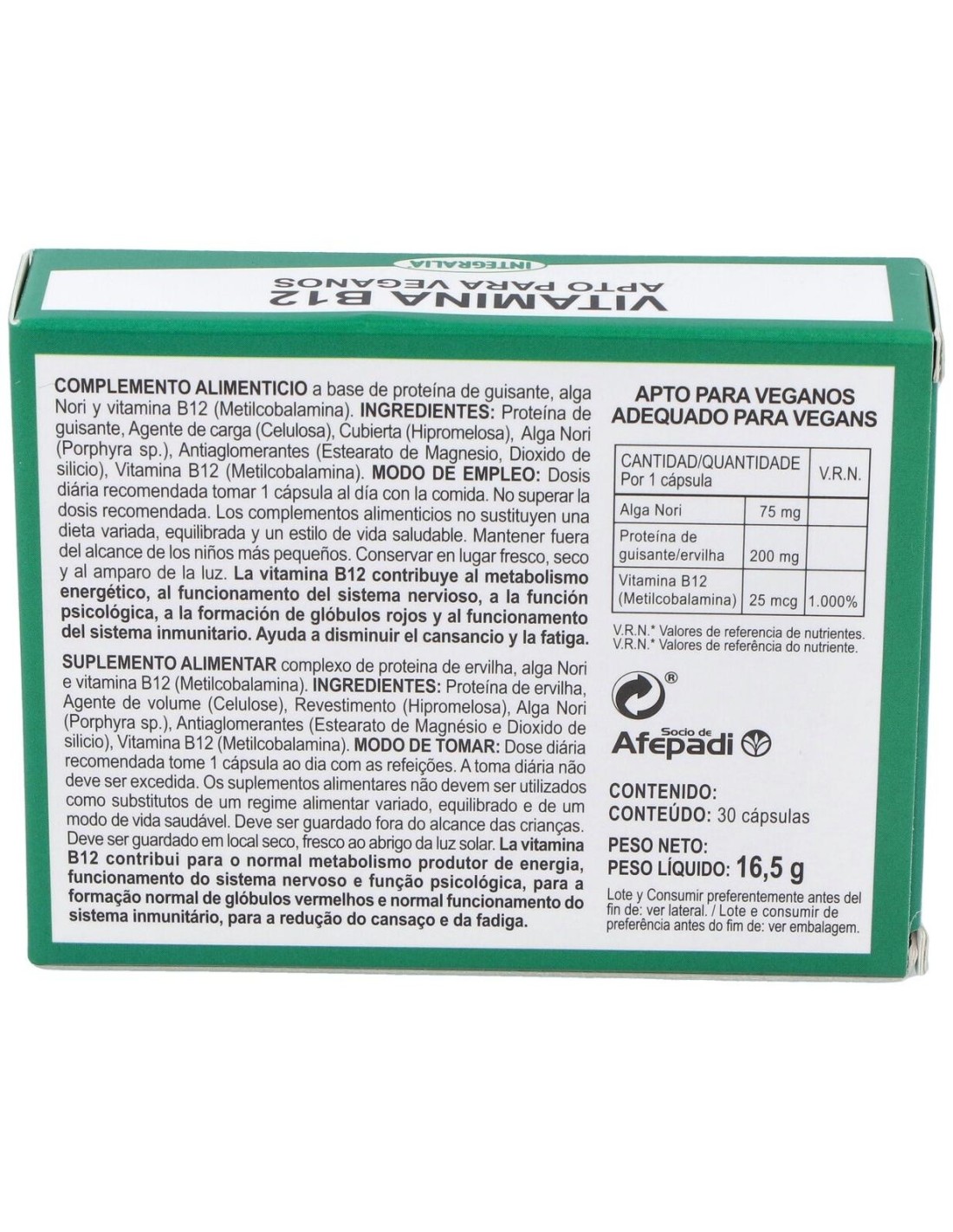 Vitamina B12 30Cap. de Integralia es un suplemento diseñado para personas que buscan apoyar su ingesta diaria de esta vitamina esencial. Es adecuado para quienes desean mantener niveles adecuados de vitamina B12 dentro de una dieta equilibrada.