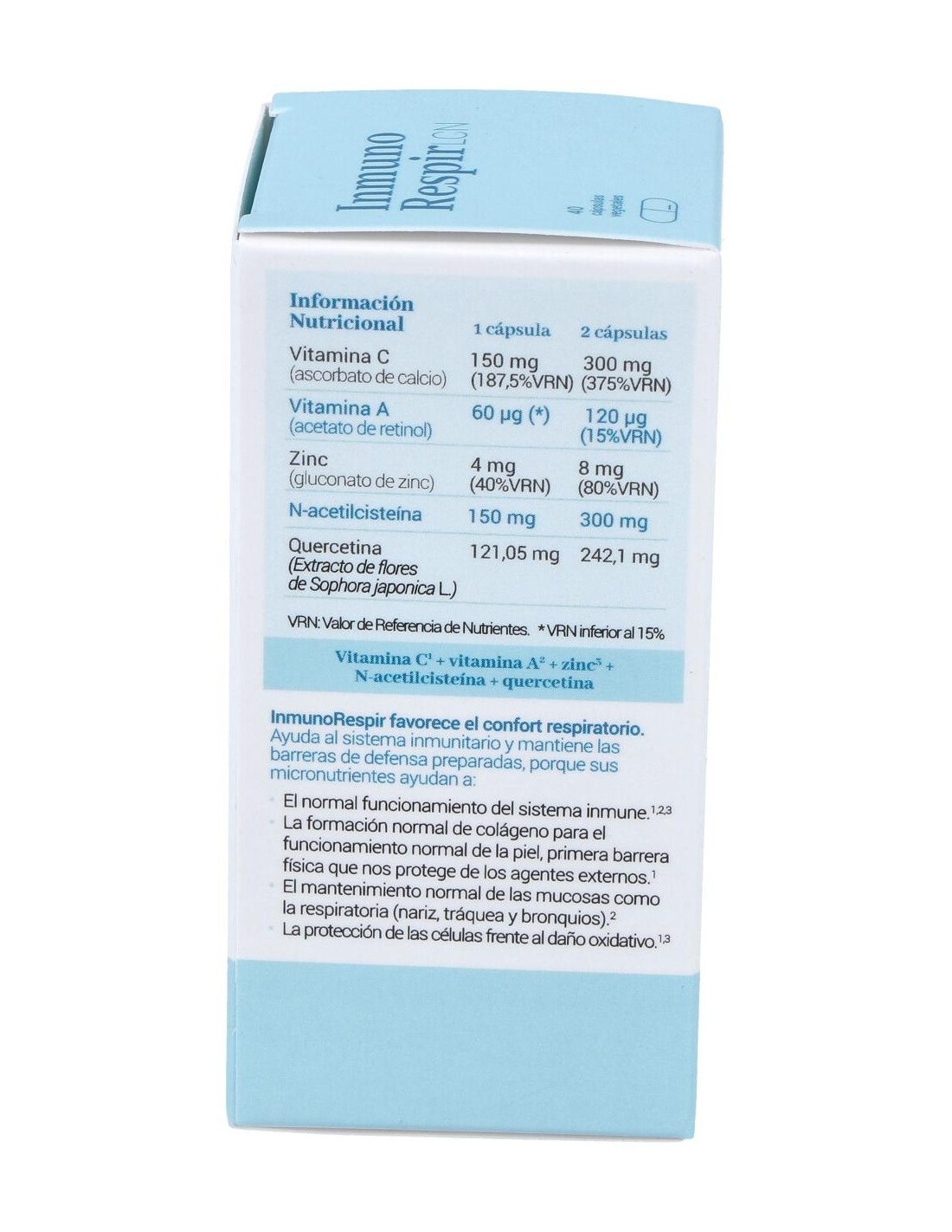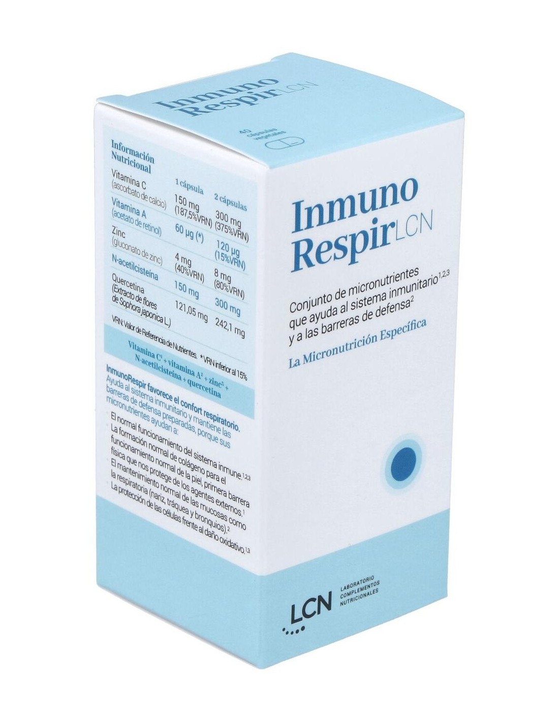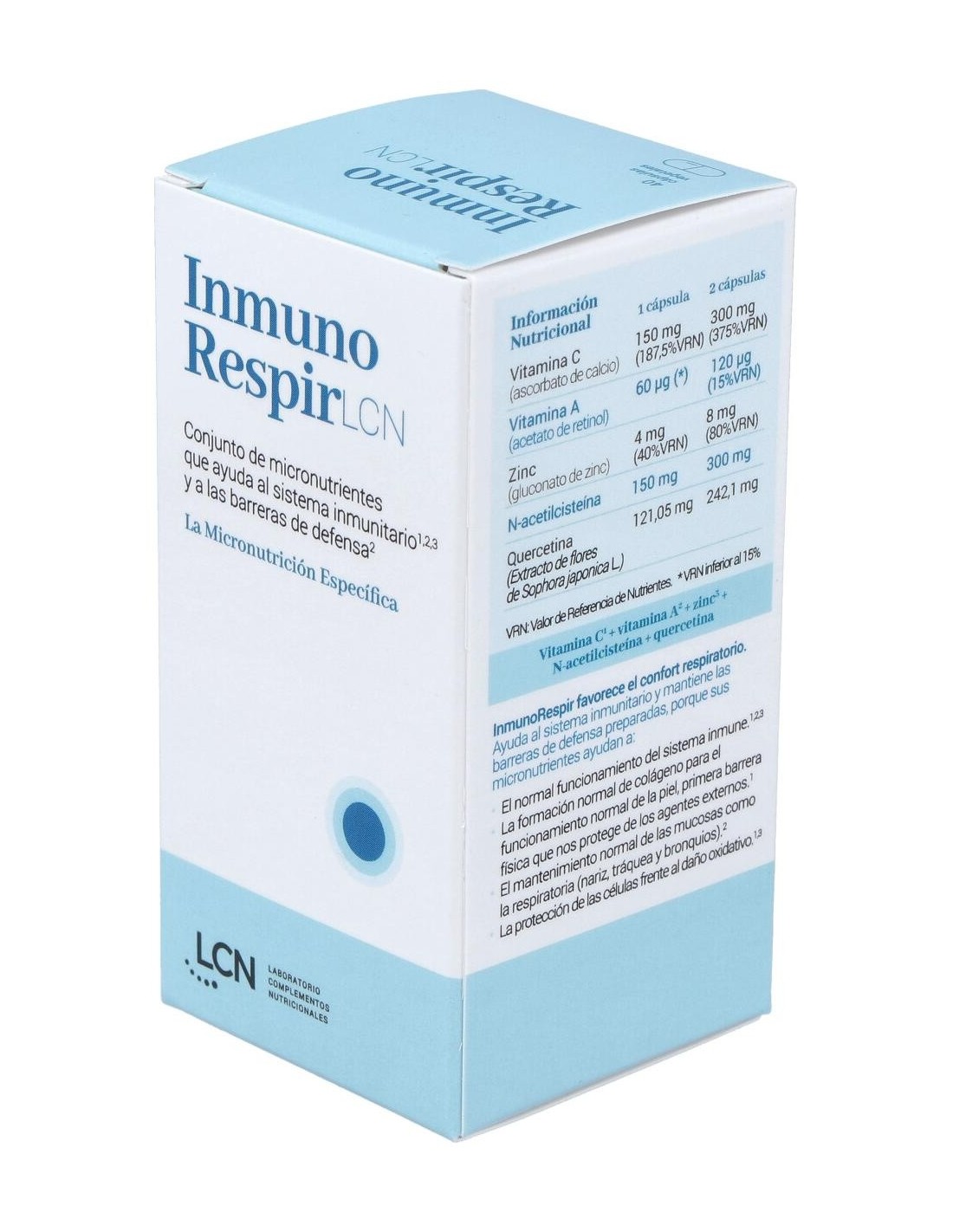 Inmunorespir 40Cap.Veg. de Lcn es un suplemento diseñado para personas que buscan apoyar su bienestar respiratorio y sistema inmunológico mediante ingredientes seleccionados. Su formulación en cápsulas vegetales facilita su integración en rutinas diarias de cuidado personal.