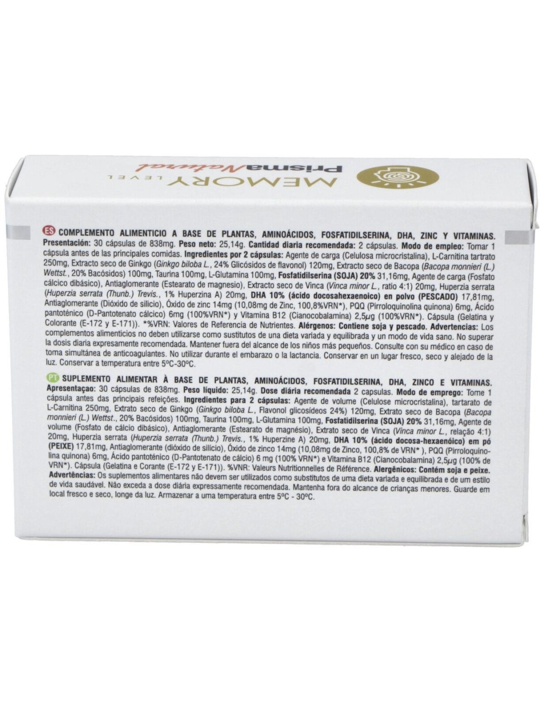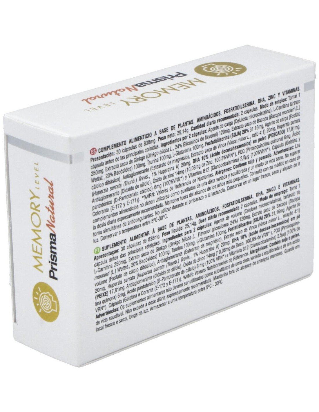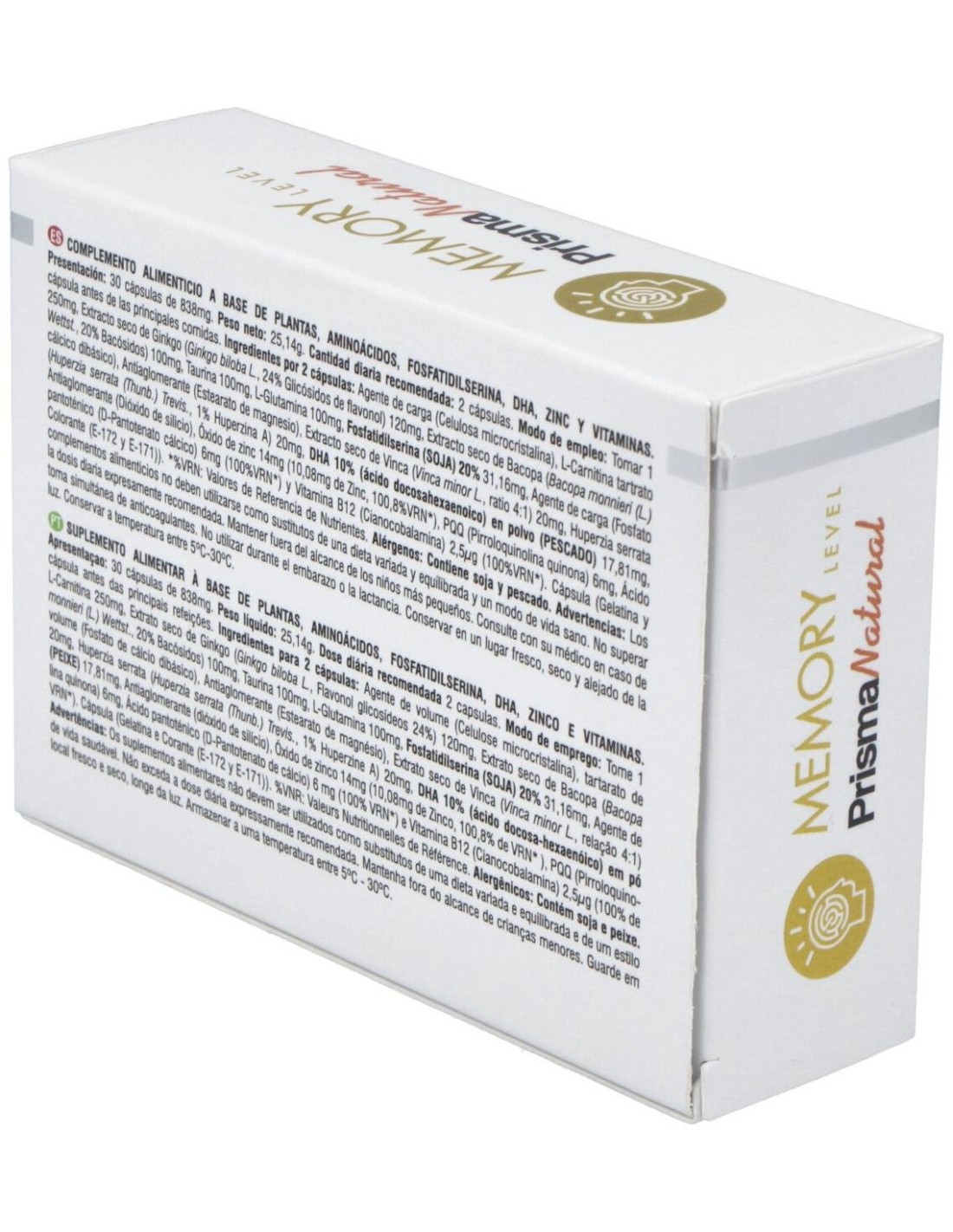 Memory Level 30Cap. de Prisma Natural es un suplemento diseñado para personas que buscan apoyar su función cognitiva diaria y mantener un estilo de vida activo y equilibrado. Su formulación está pensada para quienes desean complementar su rutina con ingredientes que contribuyen al bienestar mental.