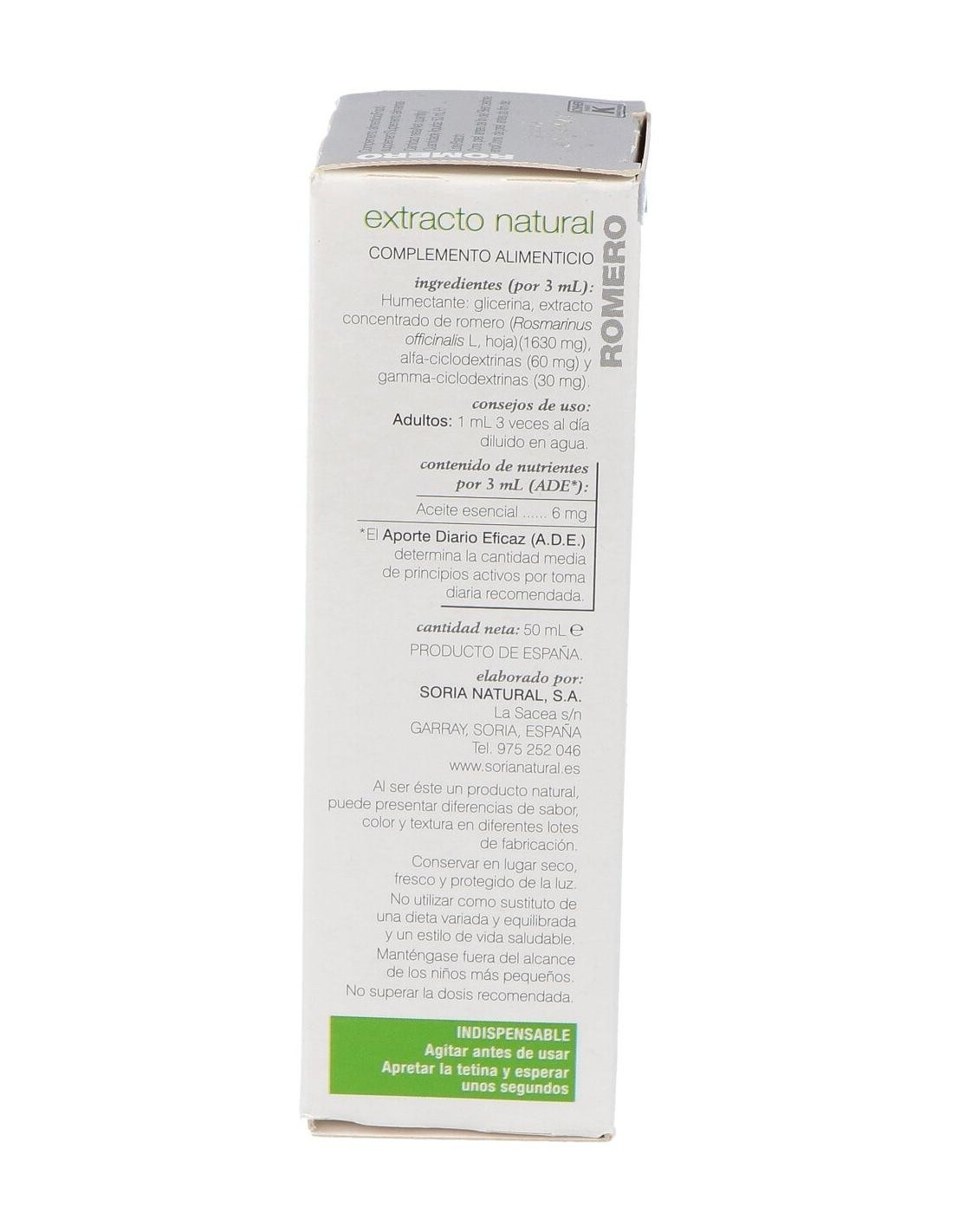 Ext. Romero Xxi 50Ml. S/Al de Soria Natural ofrece una alternativa natural para quienes valoran productos derivados de plantas en su cuidado personal o complementos diarios.