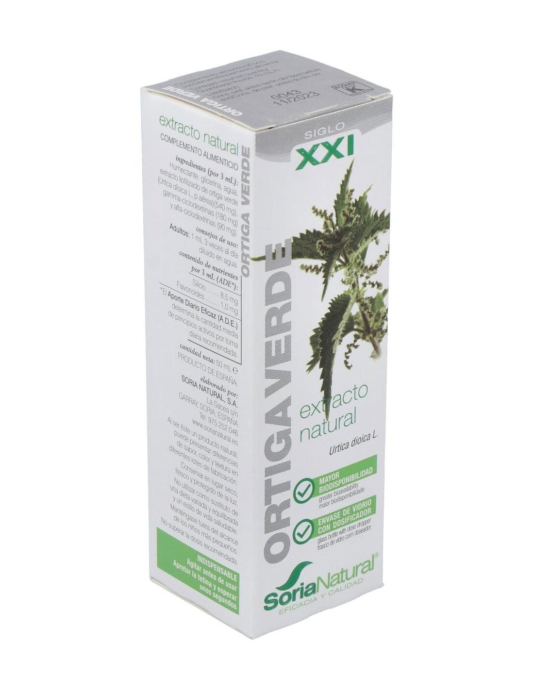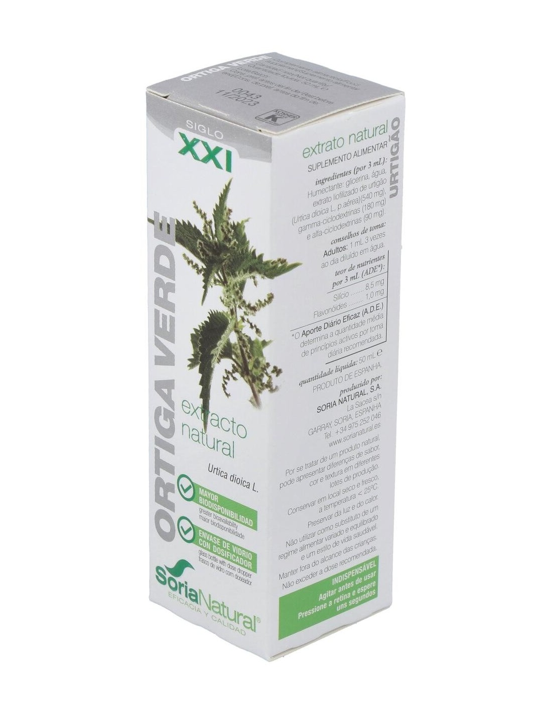 El Extracto de Ortiga Verde XXI 50 ml de Soria Natural ofrece una alternativa natural para quienes desean incorporar las características de esta planta en su día a día, con una presentación práctica y sin alcohol.