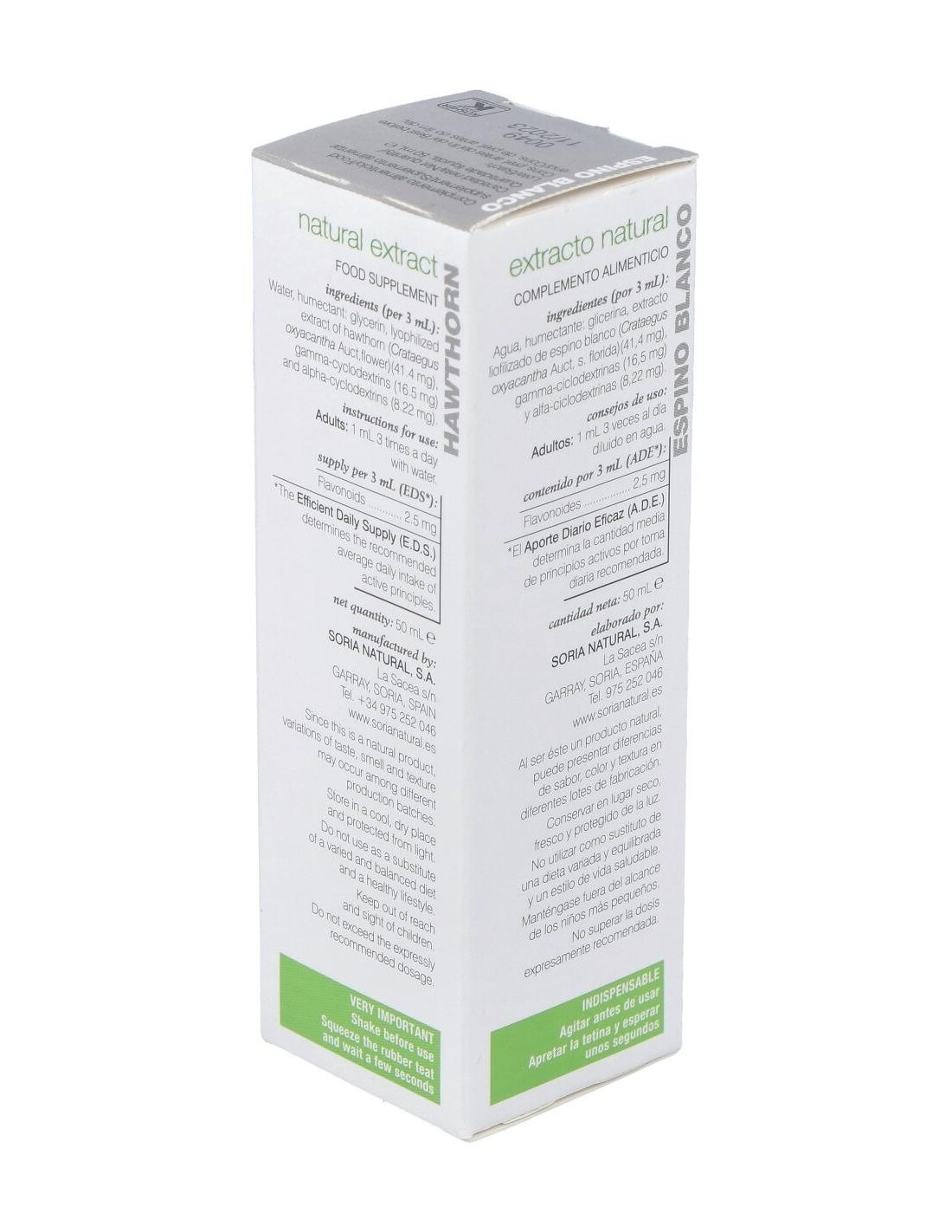 El Extracto de Espino Blanco XXI 50 ml de Soria Natural es un complemento pensado para personas que buscan apoyar su bienestar diario mediante ingredientes de origen natural. Su formulación está diseñada para integrarse fácilmente en rutinas de cuidado personal.