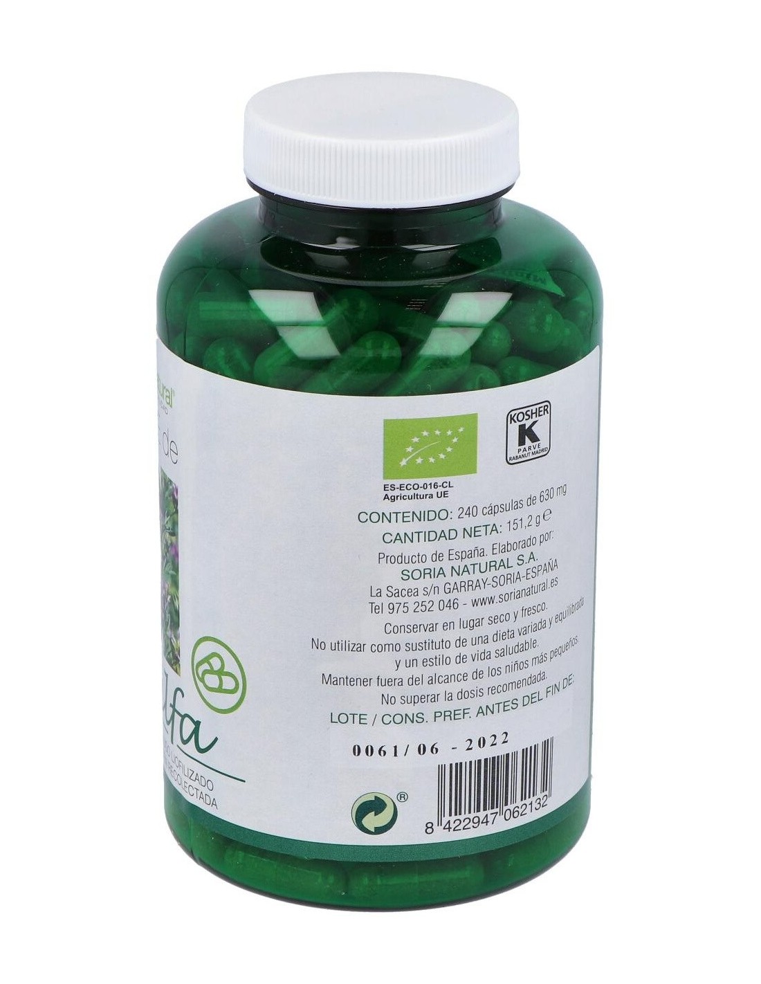 Verde De Alfalfa 240Cap. de Soria Natural ofrece una forma cómoda y natural de complementar la alimentación diaria con ingredientes vegetales.
