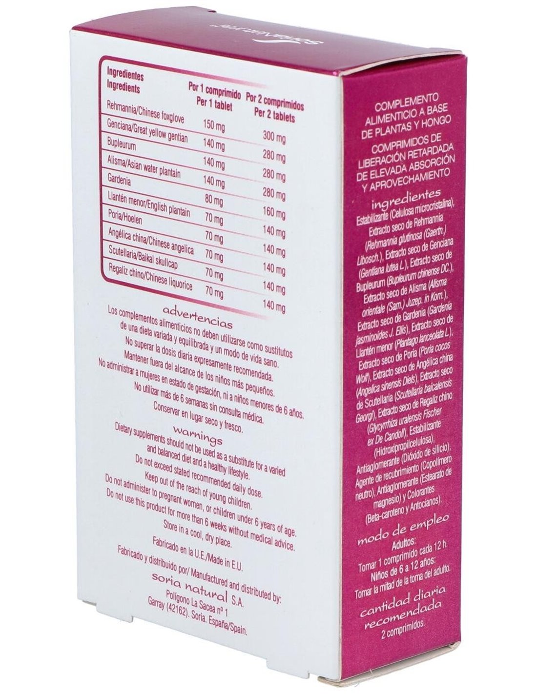 - Elaborado con ingredientes seleccionados que contribuyen a la formulación tradicional de Soria Natural.