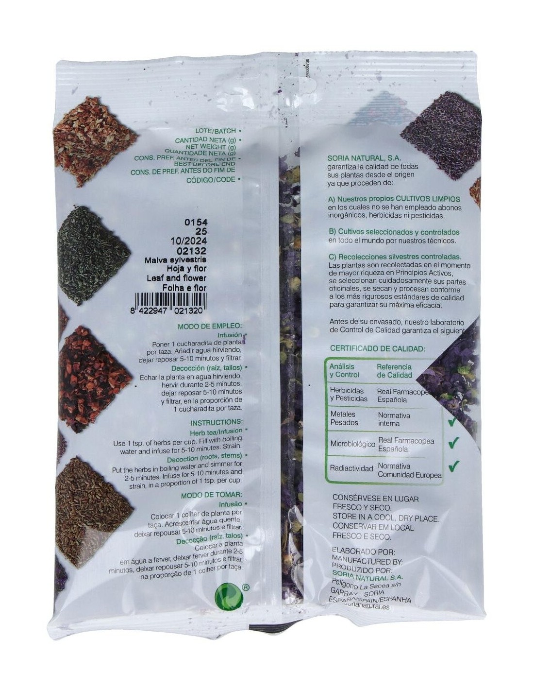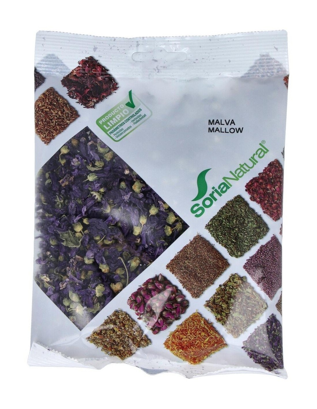 - Presenta flores de malva cuidadosamente seleccionadas, facilitando su preparación y dosificación.