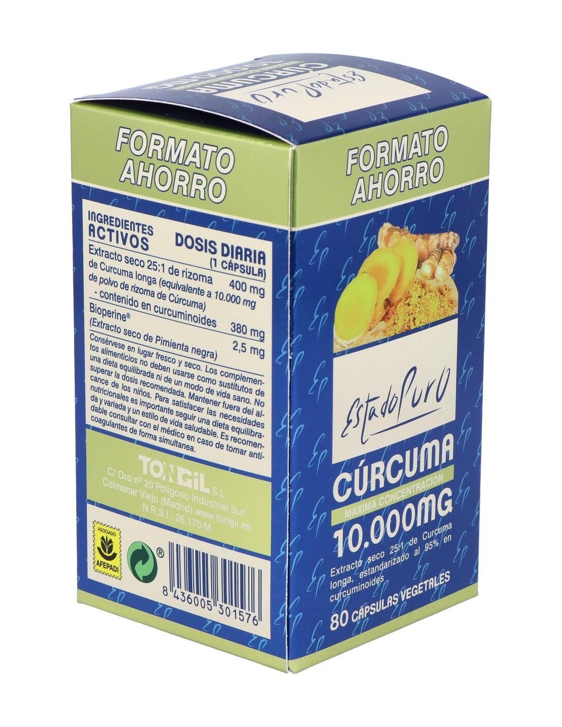 Curcuma 10.000Mg. Full Spectrum Comprex 80 Cap. Estado Puro de Tongil es un suplemento diseñado para personas interesadas en incorporar cúrcuma de alta concentración en su rutina diaria. Este producto está pensado para quienes buscan una fórmula que aporte los compuestos naturales de la cúrcuma en una presentación cómoda y dosificada.