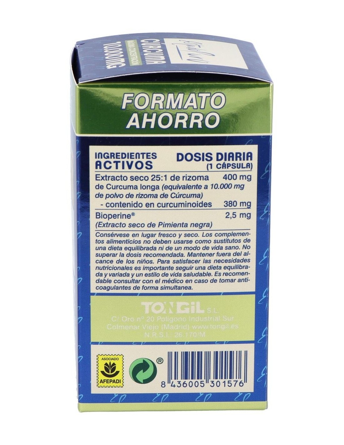 - Contiene 10.000 mg de cúrcuma en cada cápsula, facilitando una ingesta precisa y constante.