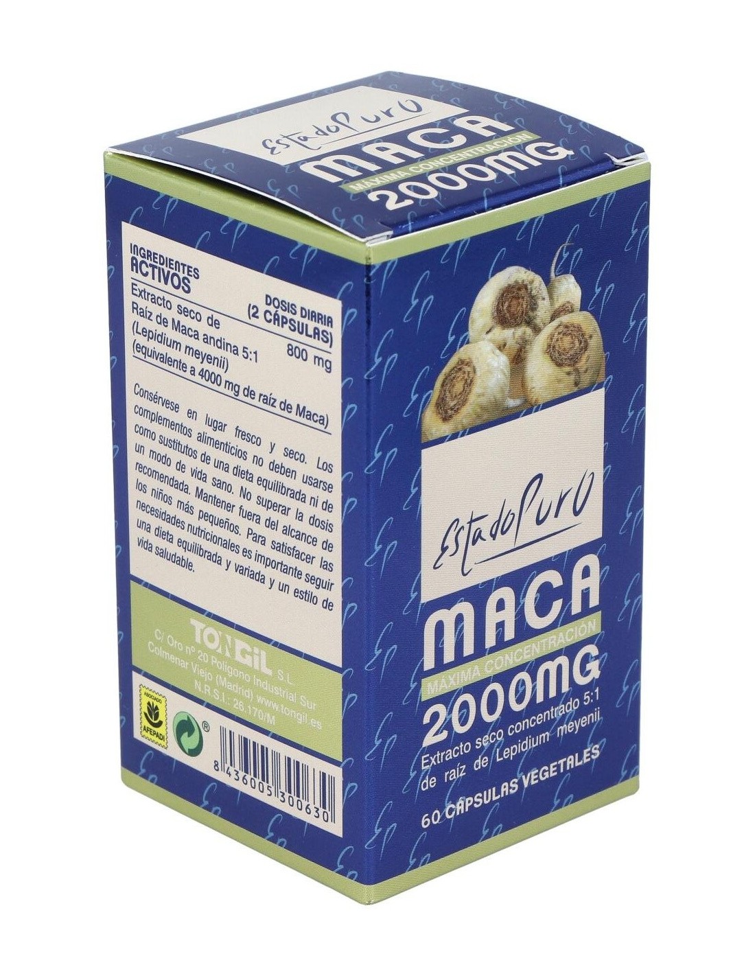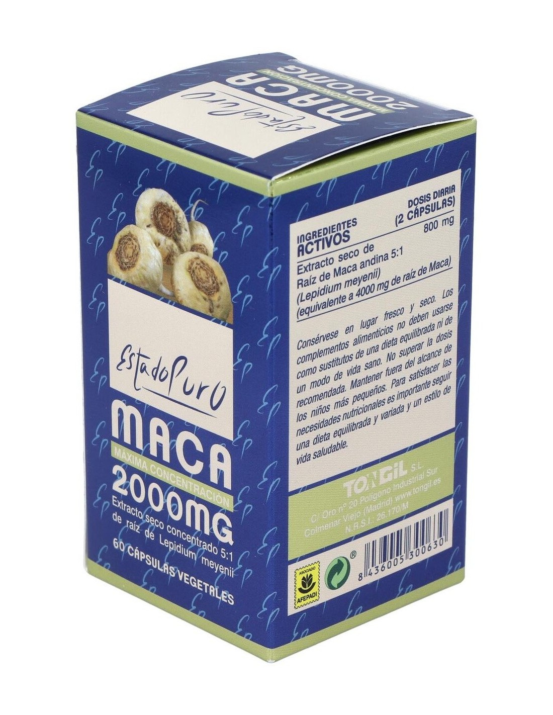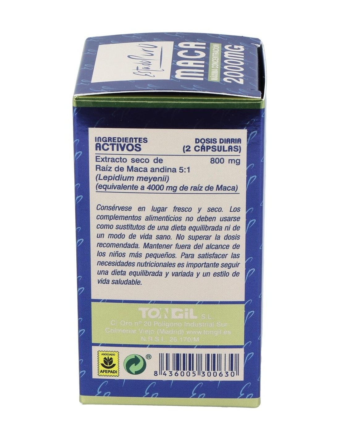 Maca 2000 mg. 60 Cápsulas Estado Puro de Tongil ofrece una forma práctica de integrar maca en la dieta diaria, aportando un extracto concentrado en una presentación diseñada para un consumo regular.