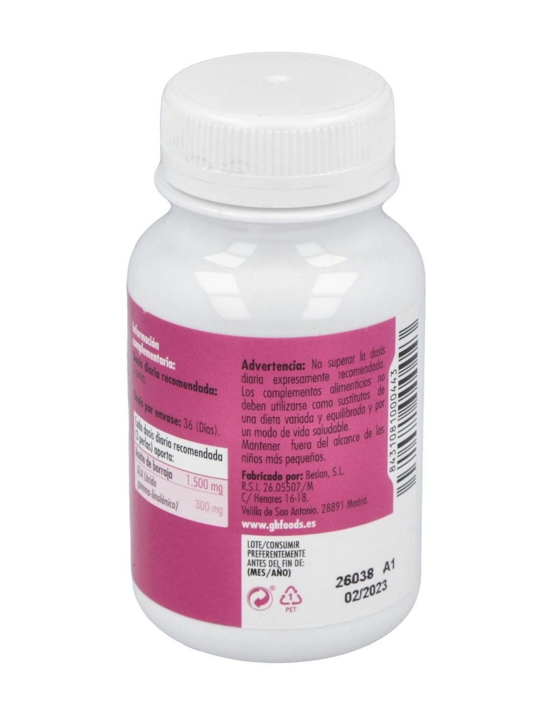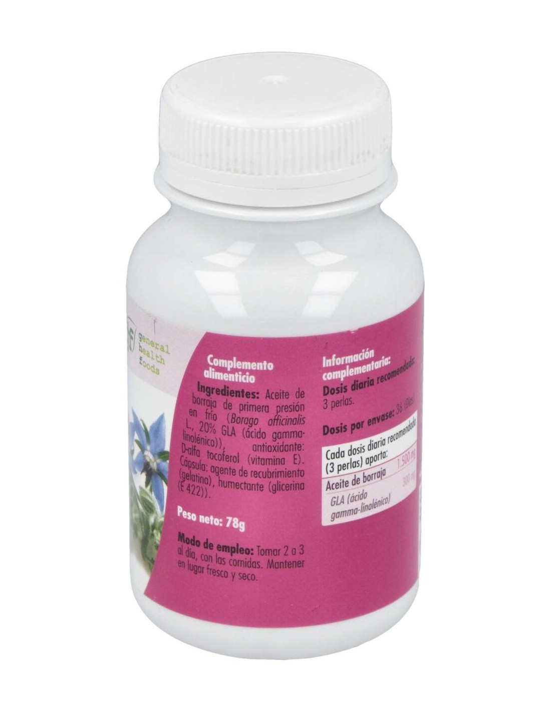 - Cada perla contiene 510 mg de extracto de borraja, contribuyendo a una ingesta constante y controlada.