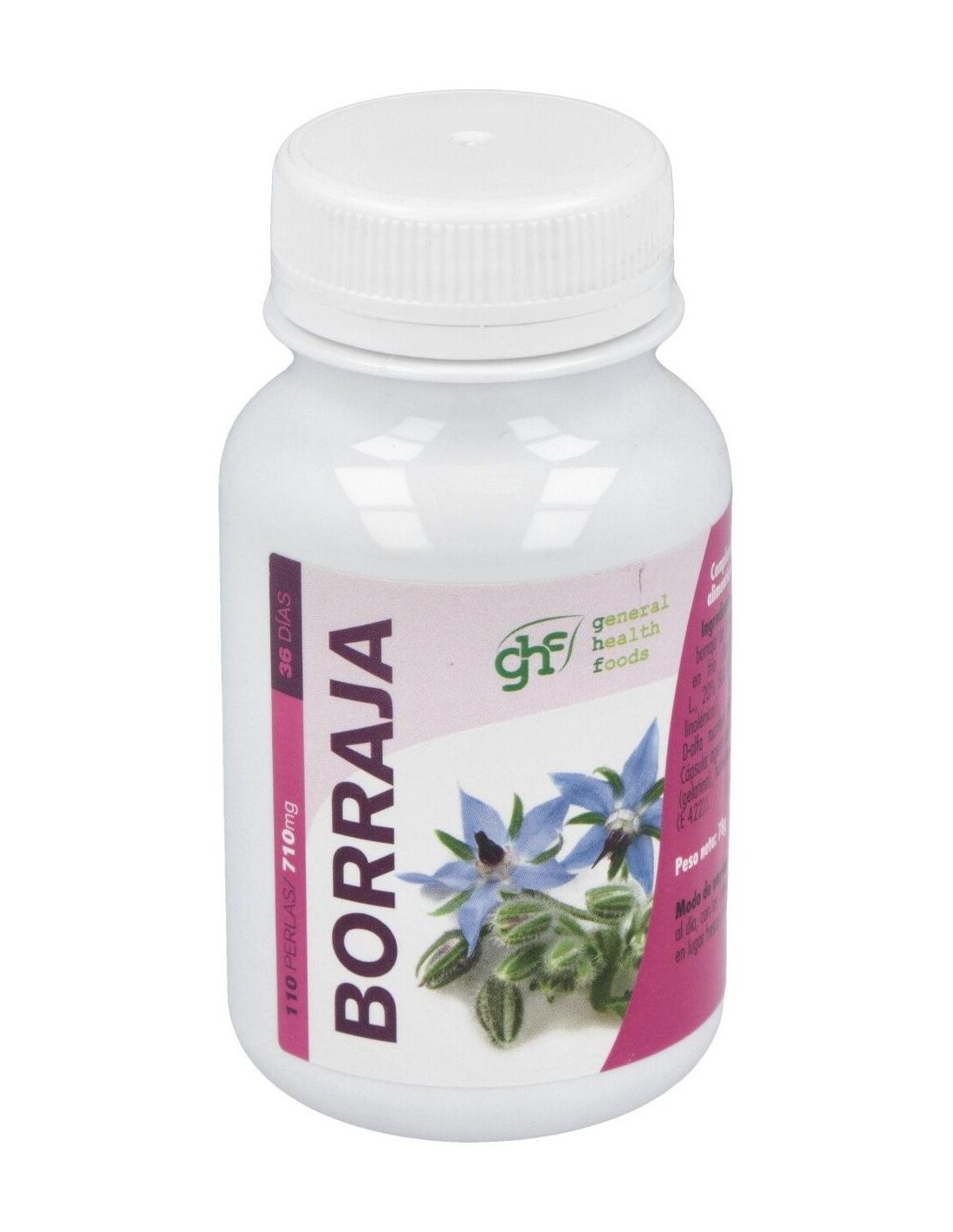 Borraja 510Mg. 110Perlas de Ghf es un suplemento diseñado para personas que buscan complementar su dieta con ingredientes naturales que aportan a su bienestar diario. Su presentación en perlas facilita la dosificación y el consumo habitual.