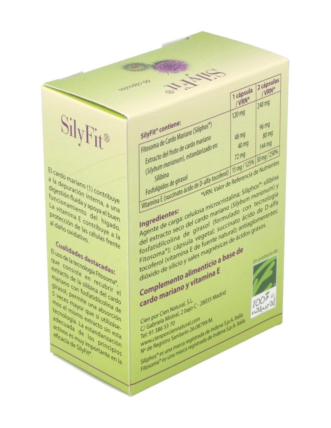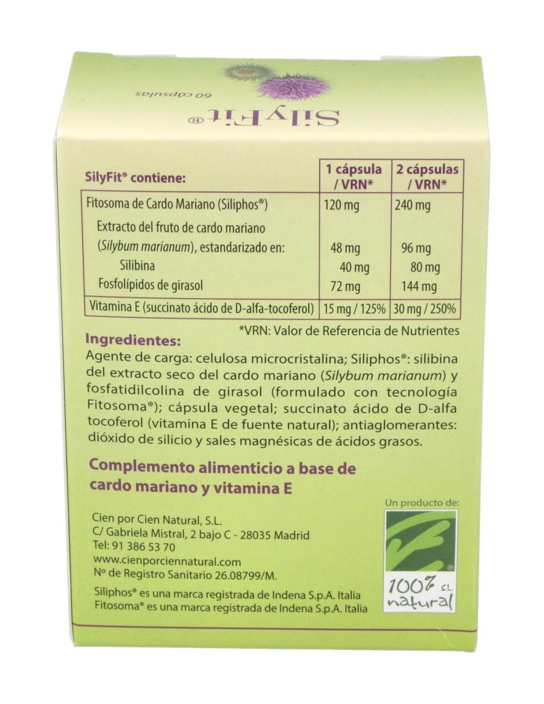 Silyfit 60Cap. de Cien Por Cien Natural es un suplemento diseñado para personas que buscan una opción natural para complementar su bienestar diario. Su formulación está orientada a quienes prefieren productos elaborados con ingredientes de origen natural.
