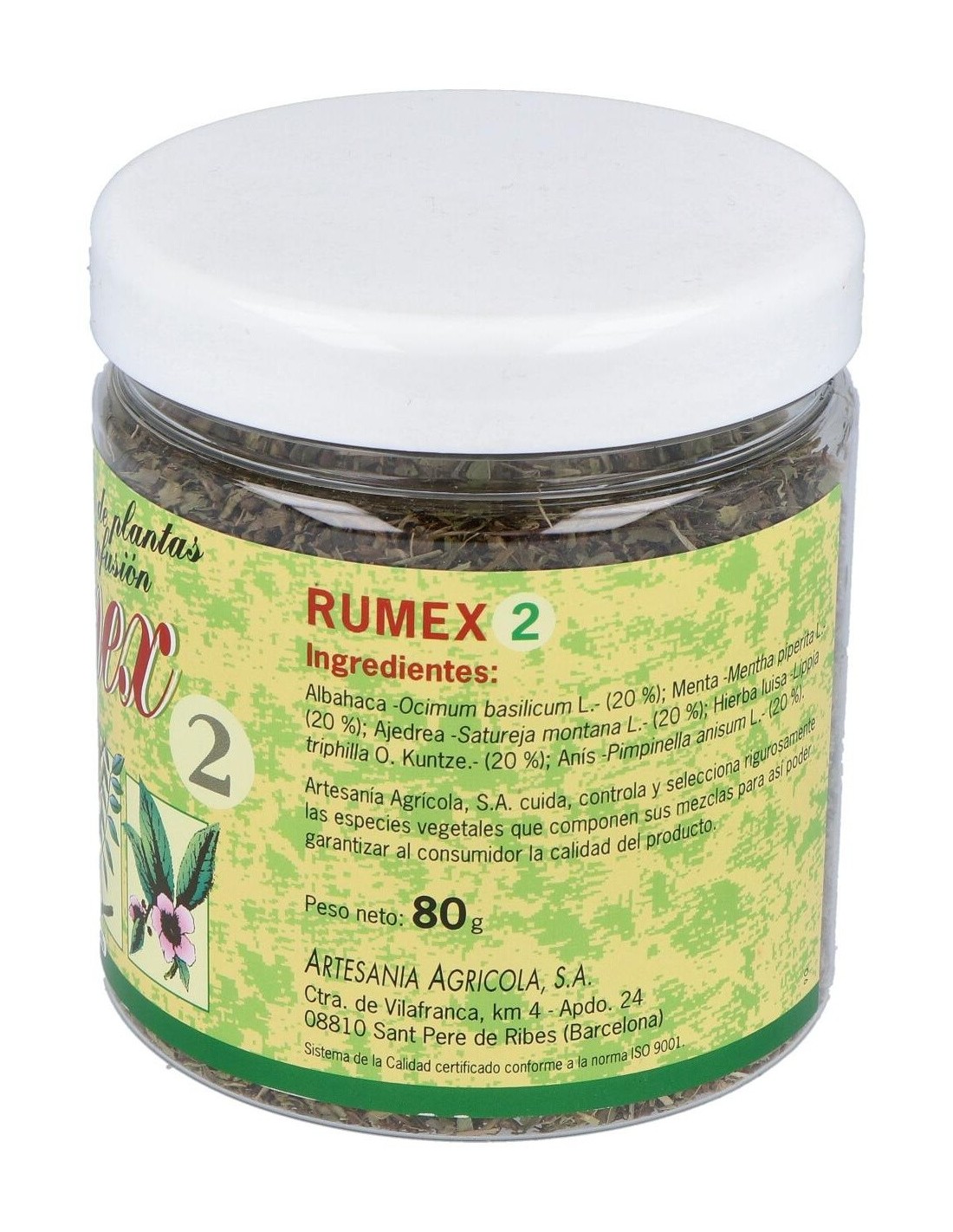 Rumex 2 Digestivo Bote 80 G de Artesania es un complemento natural diseñado para personas que buscan apoyar su bienestar digestivo mediante ingredientes tradicionales. Este producto es adecuado para quienes prefieren opciones elaboradas con métodos artesanales y componentes naturales.