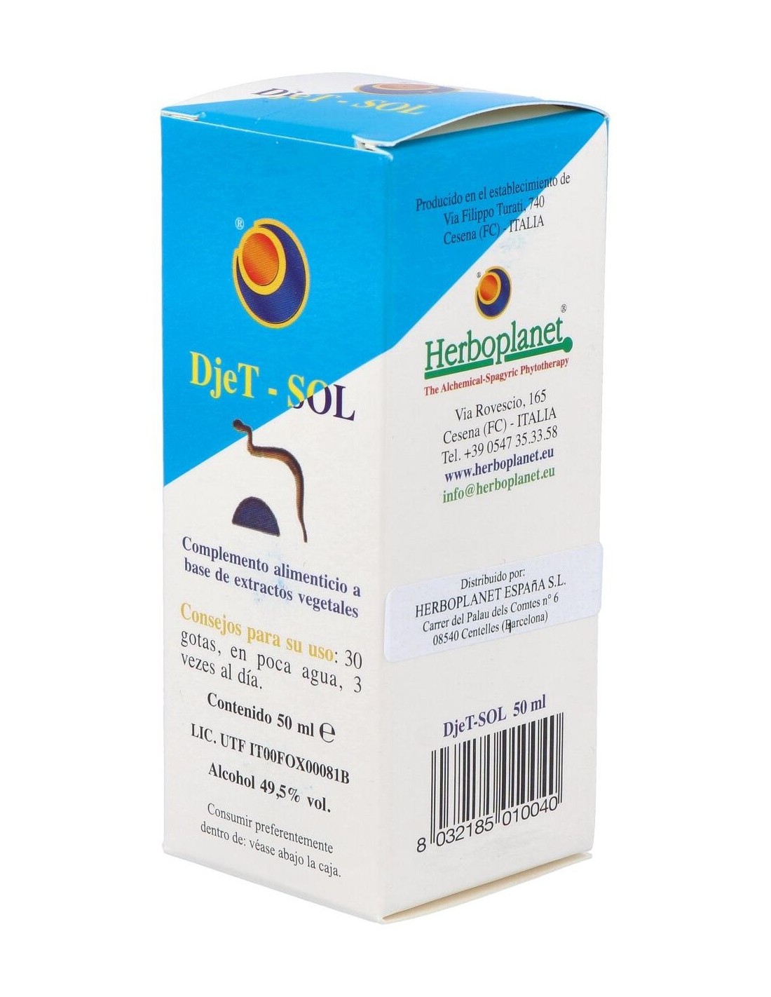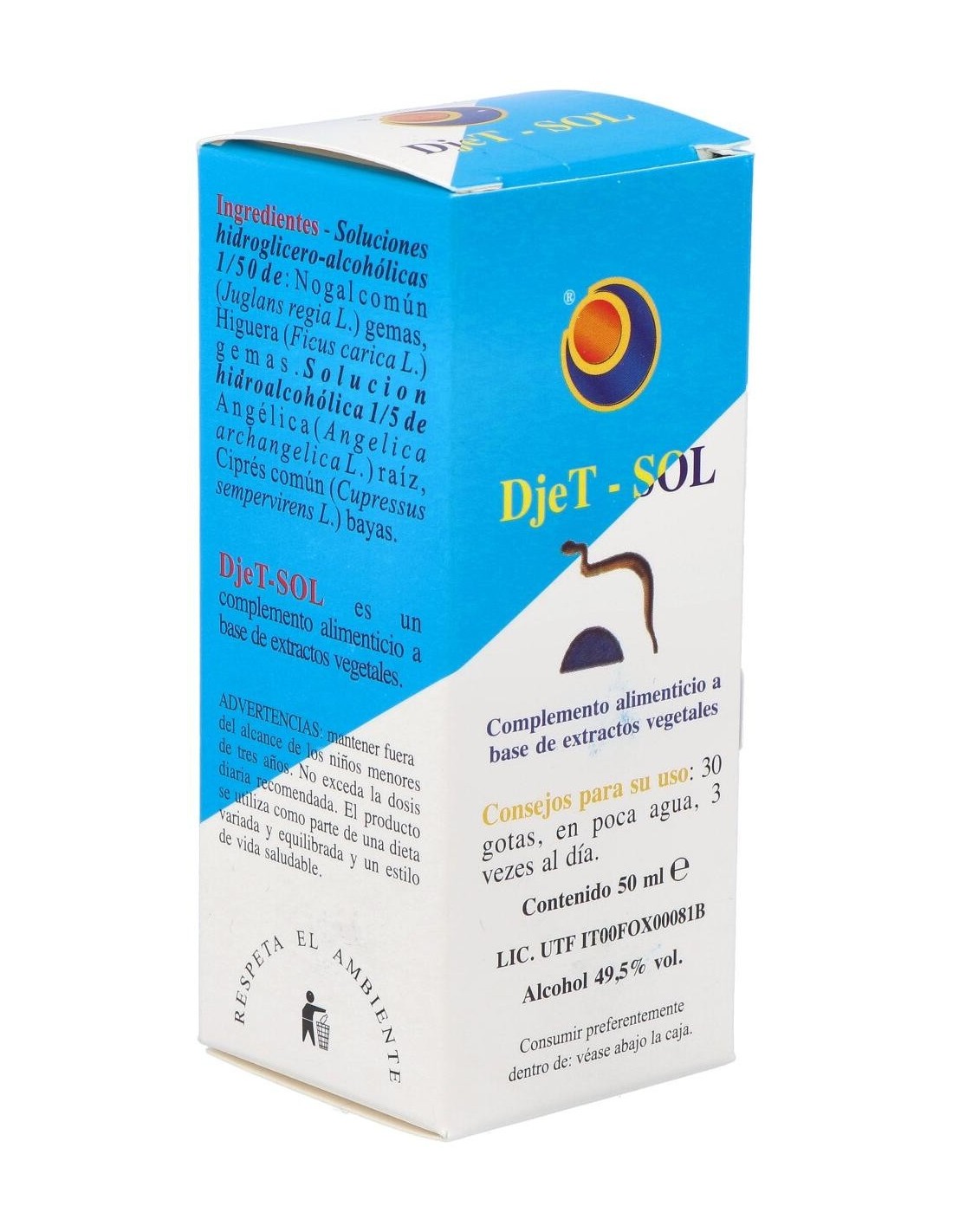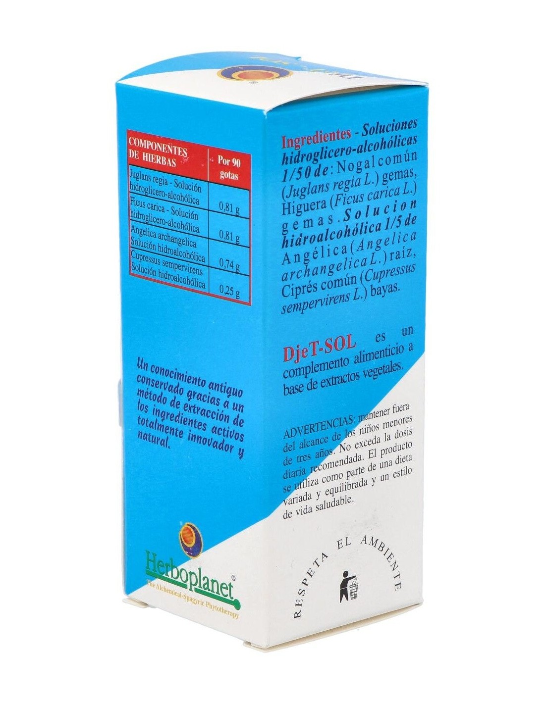 El Djet-Sol Gotas 50Ml de Herboplanet es un complemento natural para personas que buscan apoyo en su bienestar diario, formulado con ingredientes herbales que facilitan su administración en gotas.