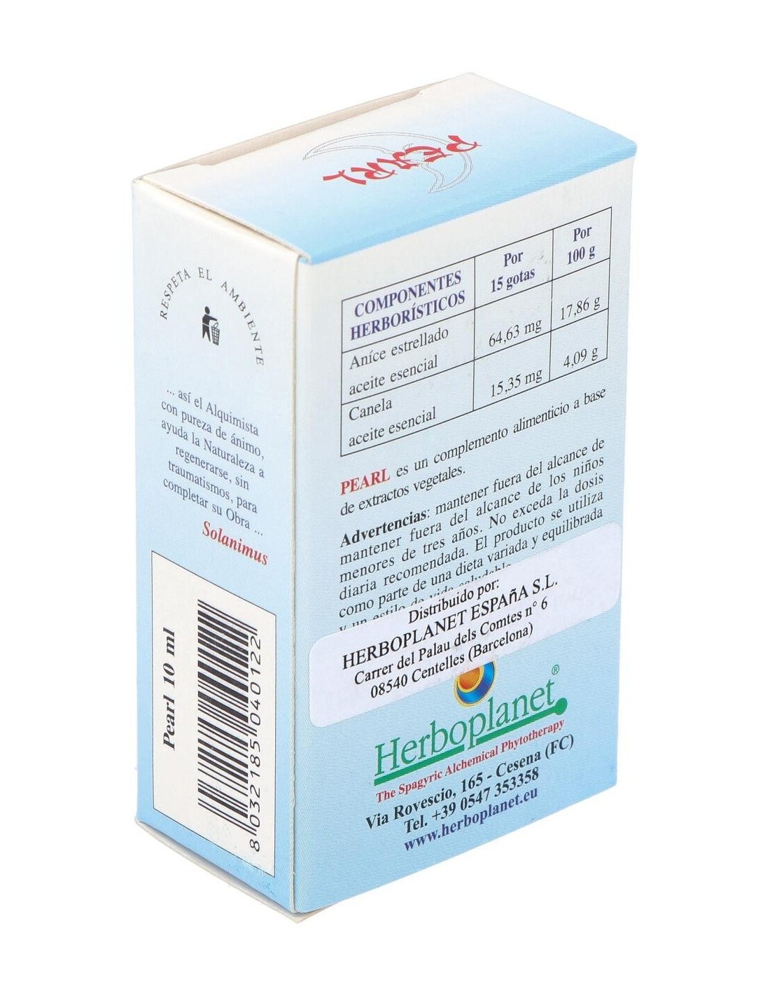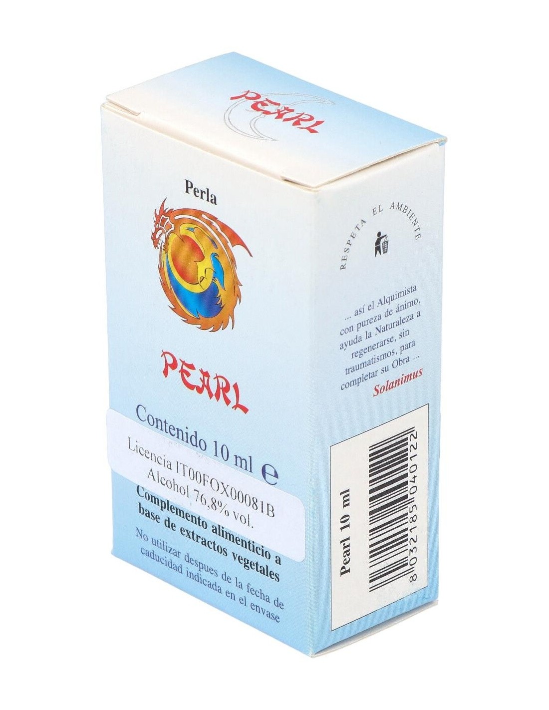 Pearl es un complemento alimenticio a base de extractos vegetales que contribuyen a la función digestiva, a la regularidad de la motilidad gastrointestinal y a la eliminación de los gases. No podemos olvidar su contribución en la fluidez de las secreciones bronquiales, y en el bienestar de la nariz y la garganta.La Perla, siendo fría refleja ondas frías de color naranja. Los rayos provenientes de la perla pertenecen al elemento agua y tienen conexión con las secreciones sutiles del cuerpo humano. El color naranja de la perla se conecta con el apacible planeta luna.El Anís (Júpiter-Luna) actúa sobre el aparato digestivo y corresponde al signo de cáncer, domicilio de la luna. La Canela (Marte) proporciona calor al cuerpo como expresión de Marte y Sol favoreciendo la menstruación y la sangre. La plata alquímica está asociada al arquetipo luna en todas las tradiciones.Psique: refuerza las ganas de vivir del individuo y lo empuja a mejorar las condiciones de su existencia. Fortalece la voluntad del sujeto y le hace muy consciente de las aspiraciones que todavía tiene pendientes de realizar. Confiere dinamismo y vitalidad. Útil cuando hay falta de motivación y de energía e incapacidad para trabajar, cuando el individuo tiene dificultad para defenderse por si mismo, cuando es miedoso y dominado por los otros, cuando no consigue manifestar su rabia y ponerse en el lugar del otro.Ingredientes por 10 ml:QSA (Quintaesencia Espagírica Alquímica de Solanimus) de Anís estrellado (Illicium verum HOOK. f.) 8,4 ml, QSA (Quintaesencia Espagírica Alquímica de Solanimus) de Canela (Cinnamomum Zeilanicum J. Presl) 1,4 ml. Plata alquímica 0,1 ml. Perla alquímica 0,1 ml.Alcohol 80% vol.Modo de empleo:Tomar 5 gotas directamente en la lengua 3 veces al día, como alternativa, sobre azúcar o miel.Presentación:Envase de 10 ml.