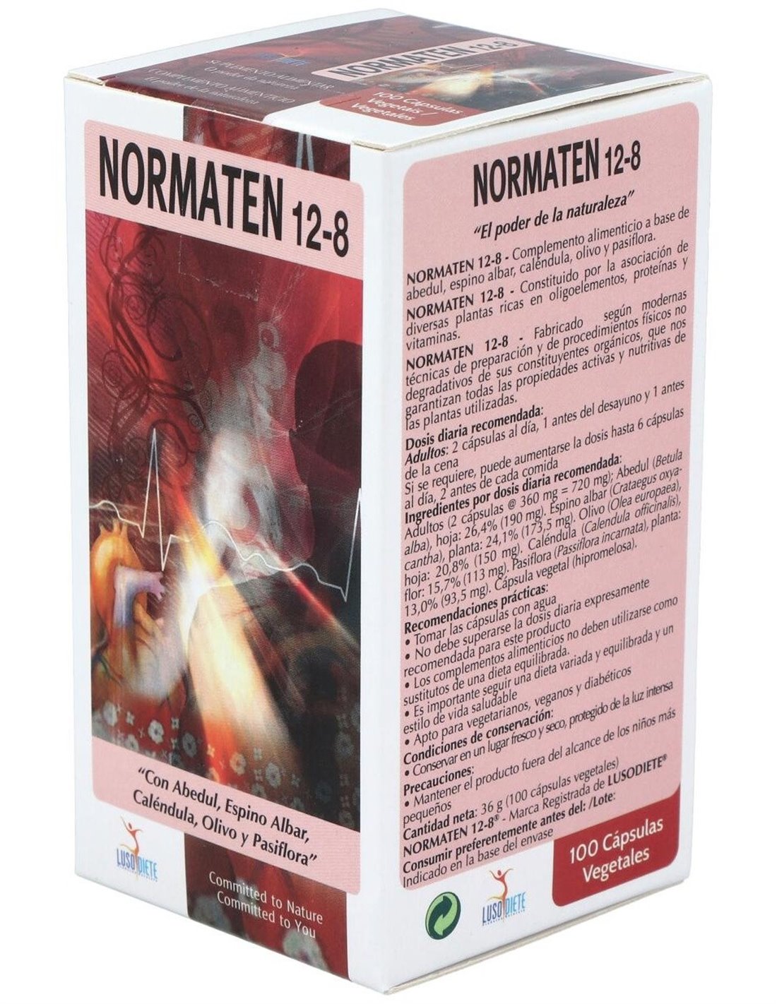 Por 2 cápsulas: Abedul (132.12 mg), Espino blanco (101.88 mg), Convalaria (101.88 mg), Cereales integrales (24.12 mg), Caléndula, Betula alba, Calendula Officinalis, Hoja de Olivo, Hoja de Abedul, Crataegus Oxyacantha, Passiflora incarnata, Espino, Flor, Planta de Olea europaea, Planta de Passiflora.