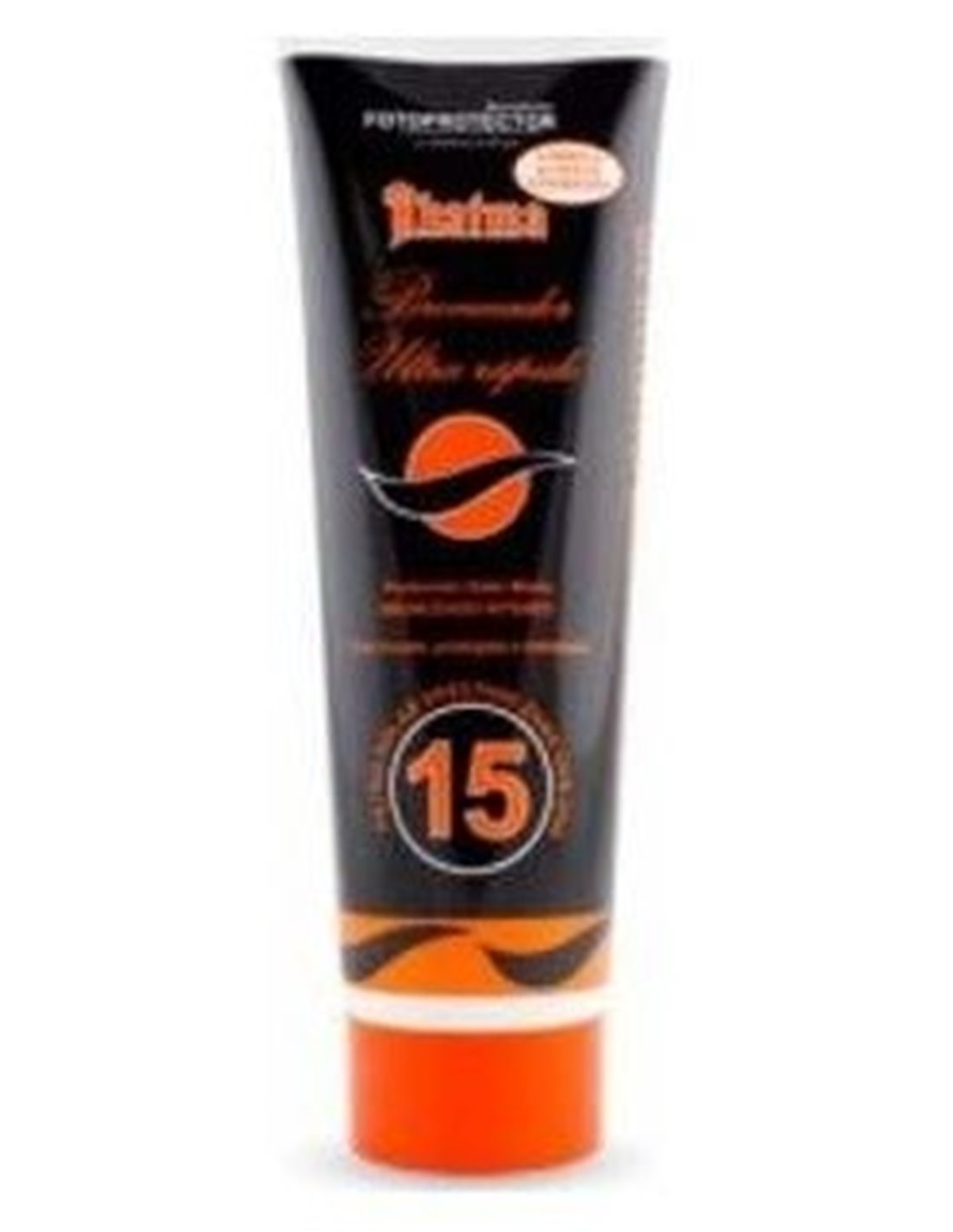 El Bronceador Ultra Rapido Spf 15 100Ml. de Rhatma es un protector solar para personas que buscan un bronceado acelerado, ofreciendo protección solar moderada con una fórmula de rápida absorción.