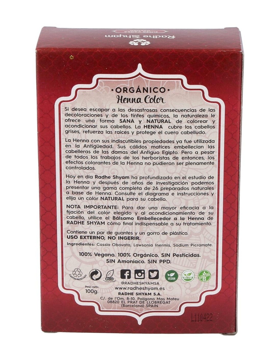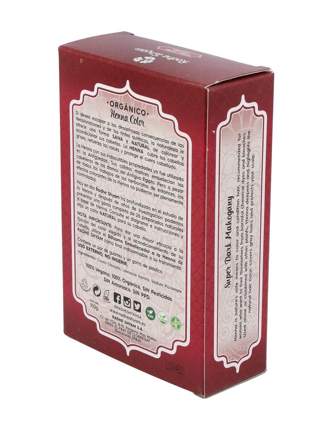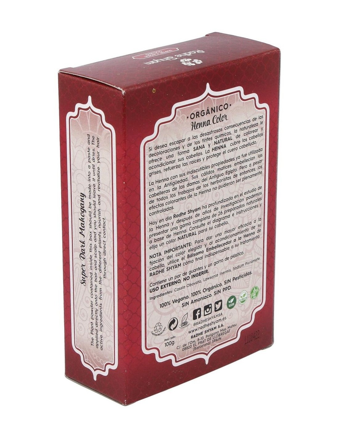 HENNA POLVO SUPER CAOBA OSCURO 100gr. de RADHE SHYAM