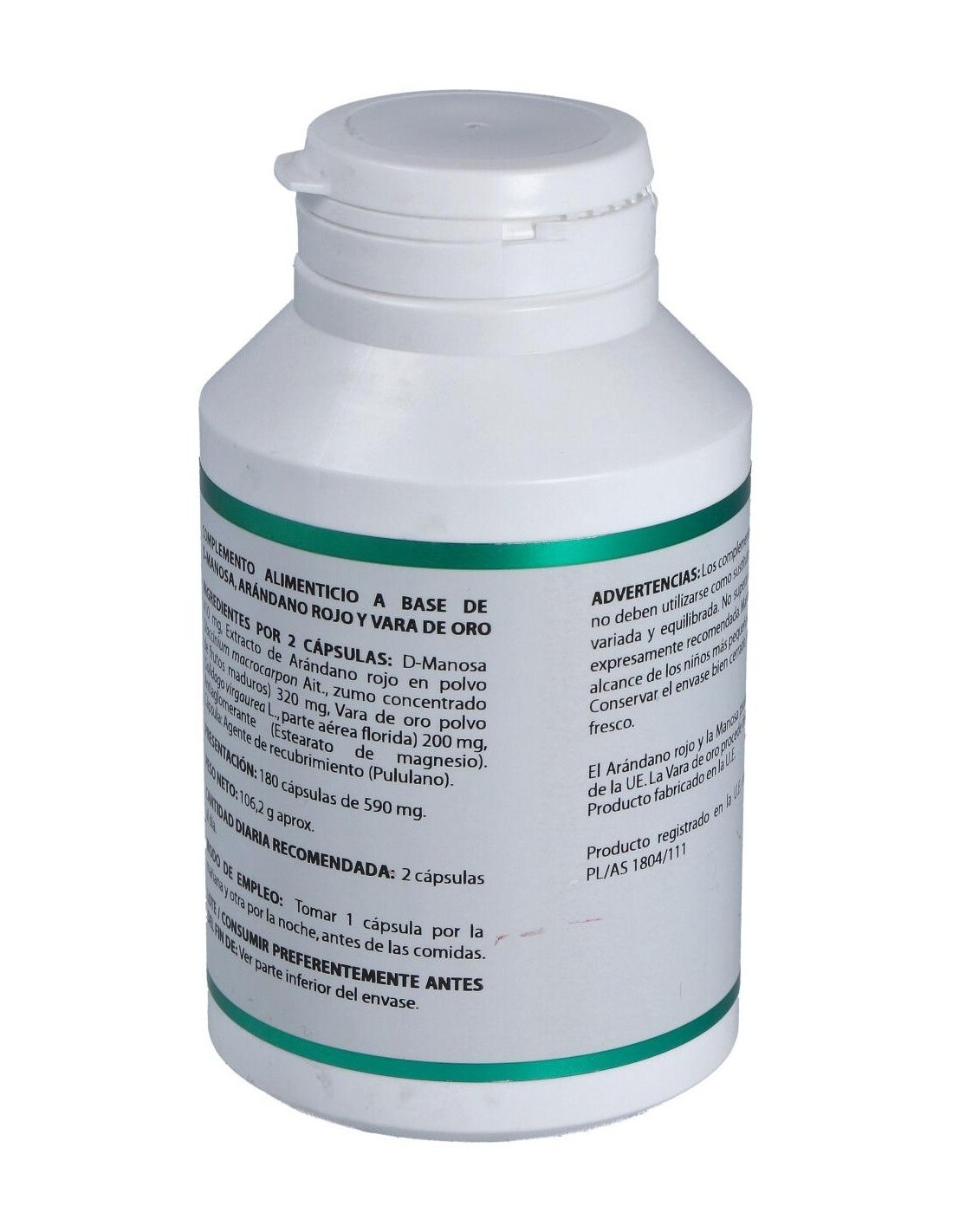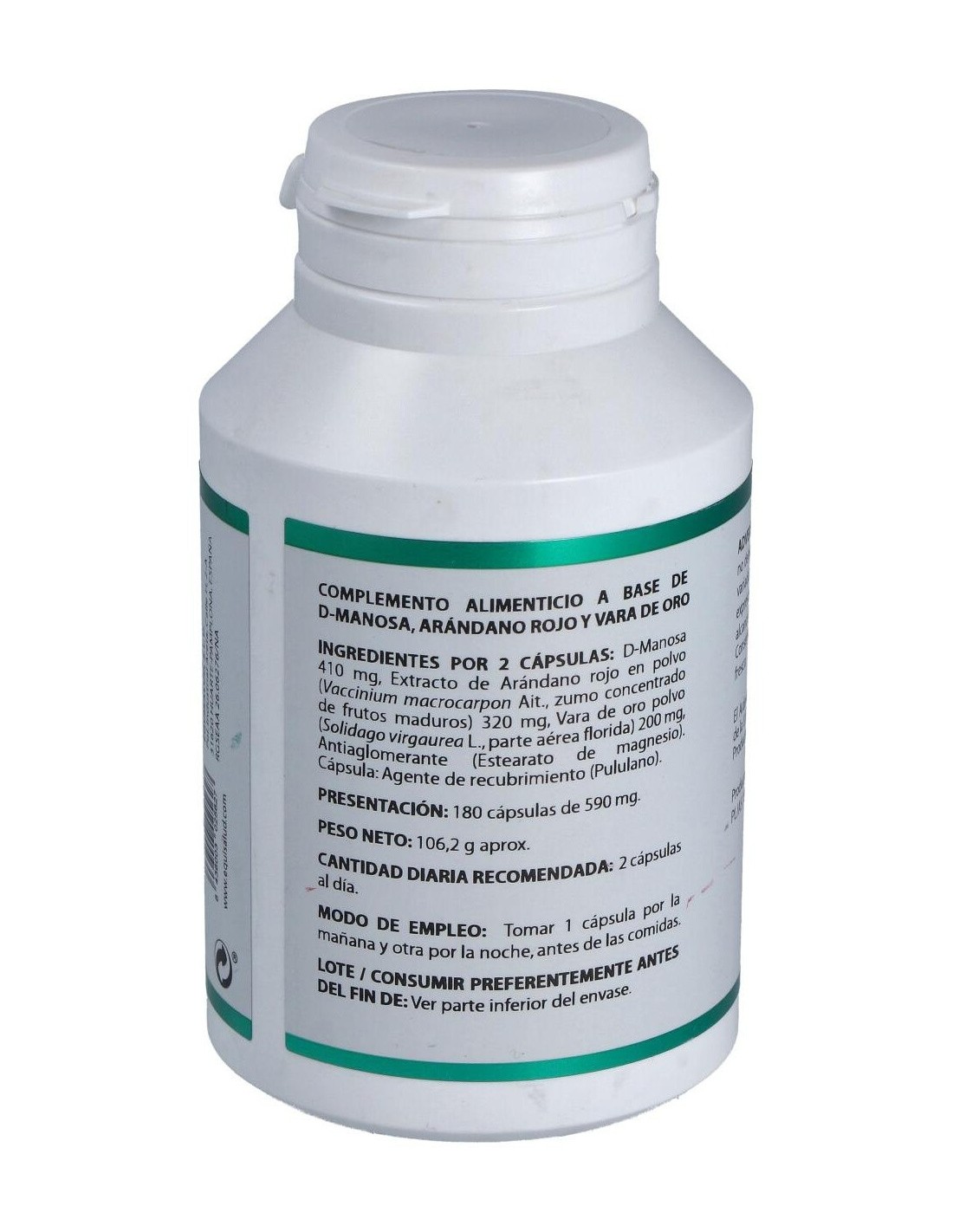 Enriquecido a base de arándano rojo, vara de oro y d-manosa posee una acción diurética.