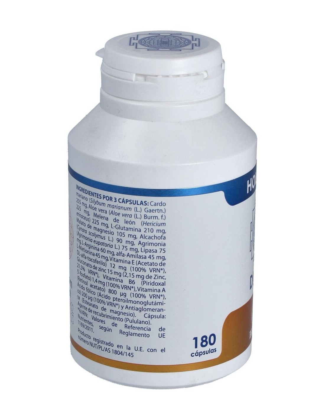 CARDO MARIANO, ALOE VERA, MELENA DE LEÓN, L-GLUTAMINA, MAGNESIO, ALCACHOFA, AGRIMONIA, LIPASA, L-ARGININA, ALFA-AMILASA, L-METIONINA, VITAMINA E, ZINC, VITAMINA B6, VITAMINA A, ÁCIDO FÓLICO.