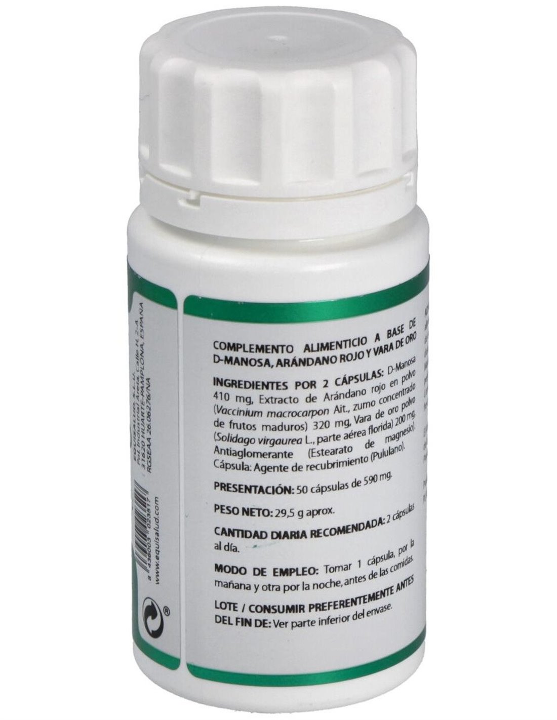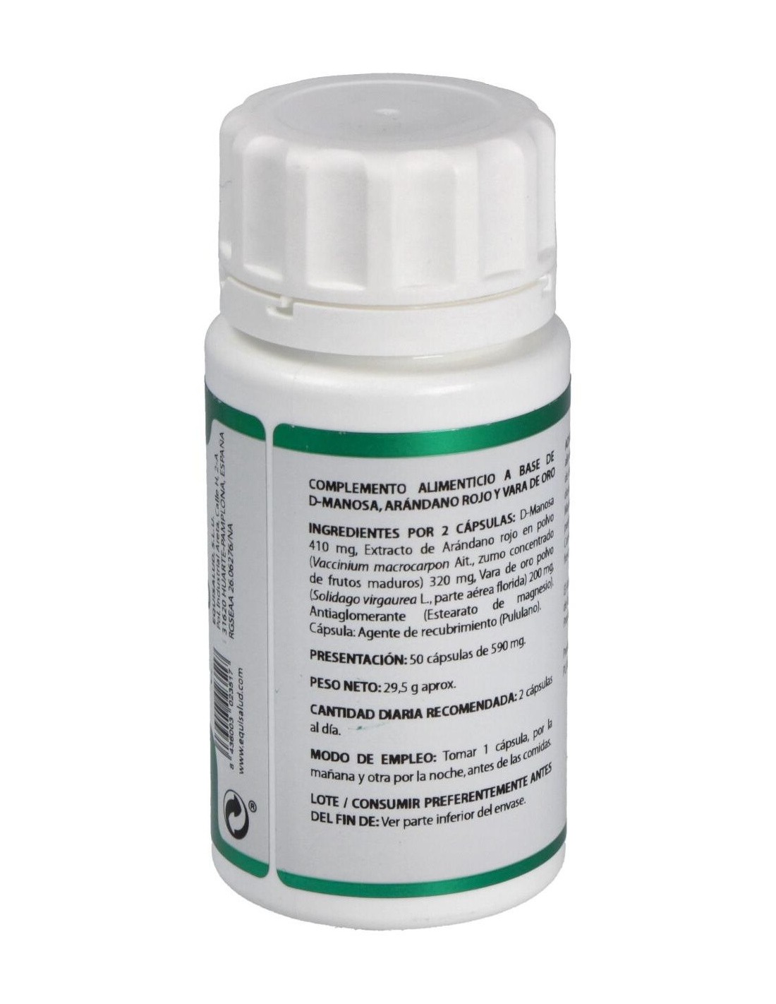D-Manosa: El uso de antiobióticos u otros antisépticos en las infecciones de orina, aunque efectivos, tienden a desequilibrar el medio, ya que su actuación no es selectiva y destruyen la flora bacteriana beneficiosa. La D-Manosa es un azúcar simple, hexosa monosacárido, que existe de forma natural en diversos árboles, en bayas y frutos, como los arándanos rojos o la piña. Se excreta rápidamente por la orina y tiene la propiedad de adherirse a las bacterias, actuando de forma semejante al arándano, evitando así la fijación de éstas en las paredes, siendo eliminadas por el flujo de orina hacia el exterior.