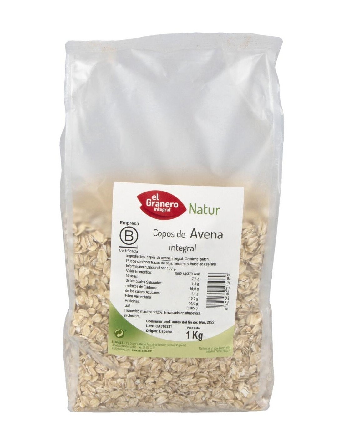 Copos De Avena Integrales 1Kg. de El Granero