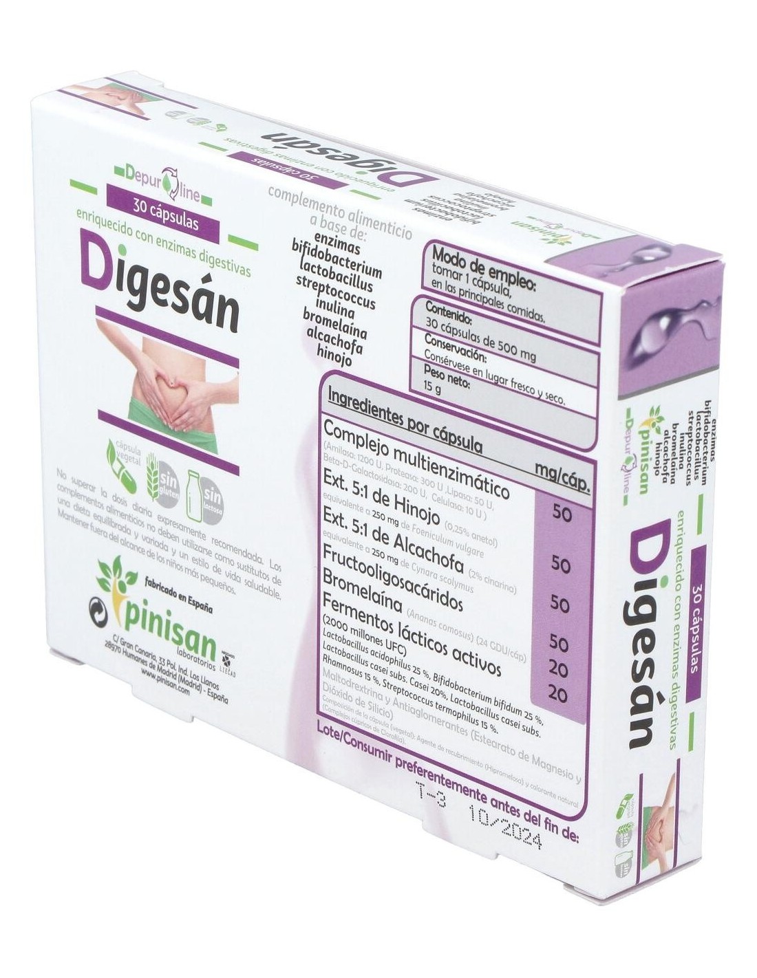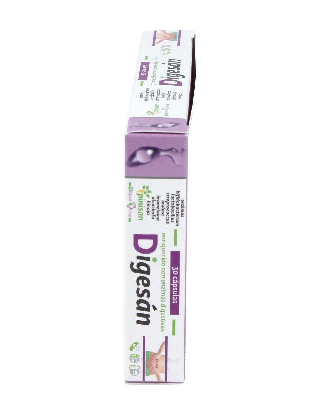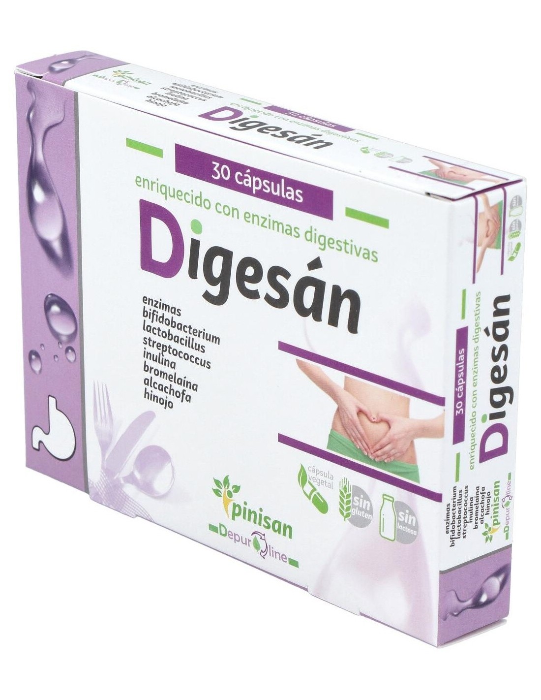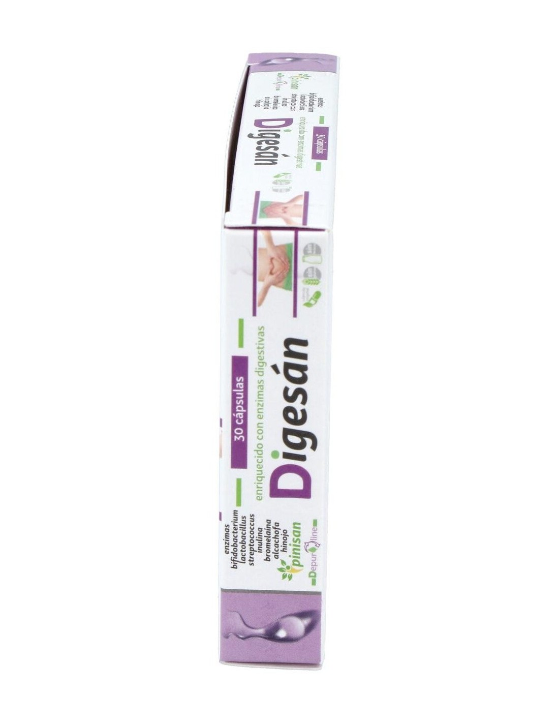 A base de probióticos, que repueblan y regeneran la flora intestinal y enzimas digestivas, que son las encargadas de que las digestiones se hagan correctamente sin producirse de esta manera fermentaciones de alimentos, ni gases, Digesan, es una excelente ayuda para aquellas personas que sufren de digestiones pesadas, acided y malestar despues de las comidas.Ingredientes por cápsula:
