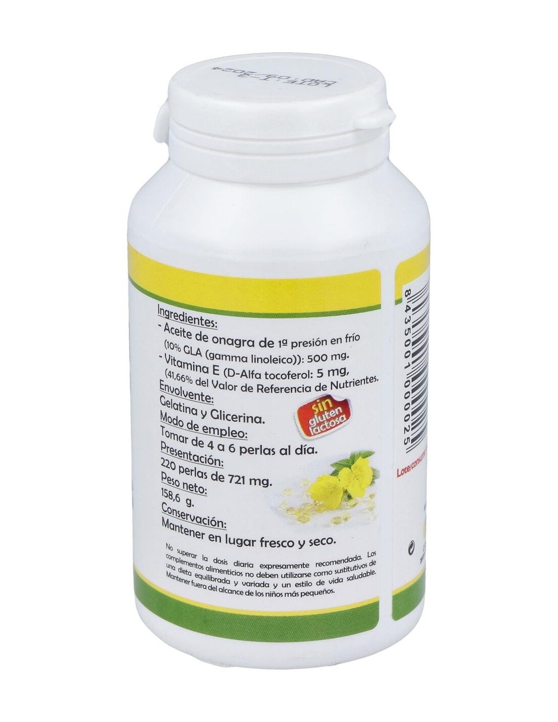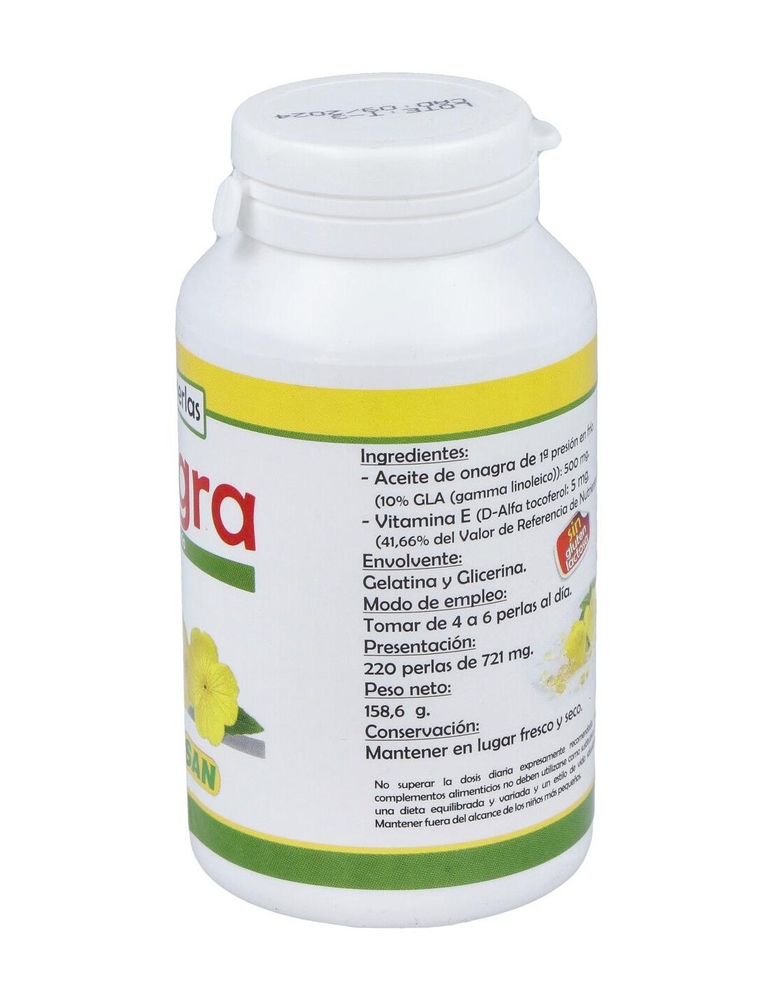 ACEITE DE ONAGRA DE 1ª PRESIÓN EN FRÍO (10% GLA GAMMA LINOLEICO): 500MG, VITAMINA E: 5MG.