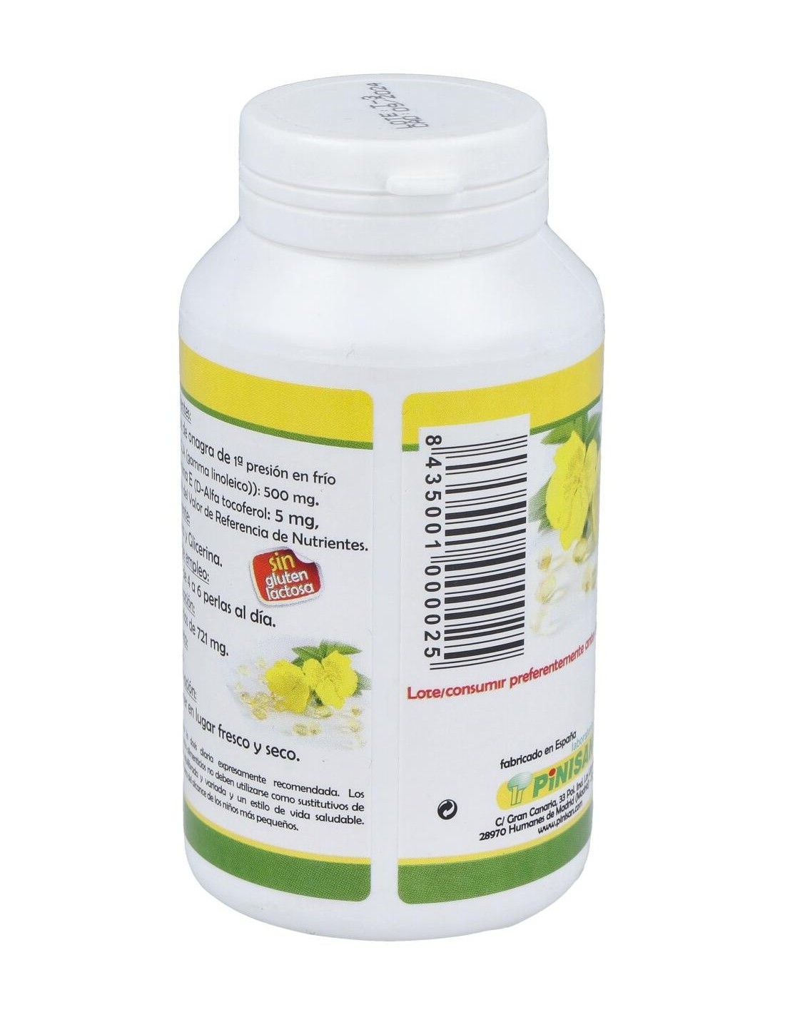 Pinisan 1 Onagra 500mg son unas perlas realizadas a base de onagra, un suplemento nutricional para el bienestar de tu organismo, muy rico en acidos grasos esenciales Omega 6 y con una gran capacidad reguladora de las hormonas femeninas.