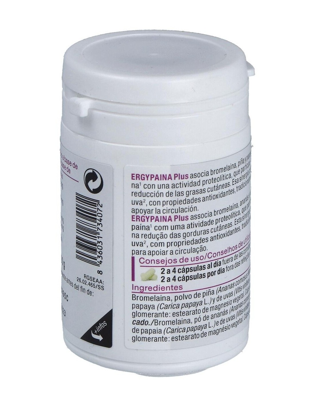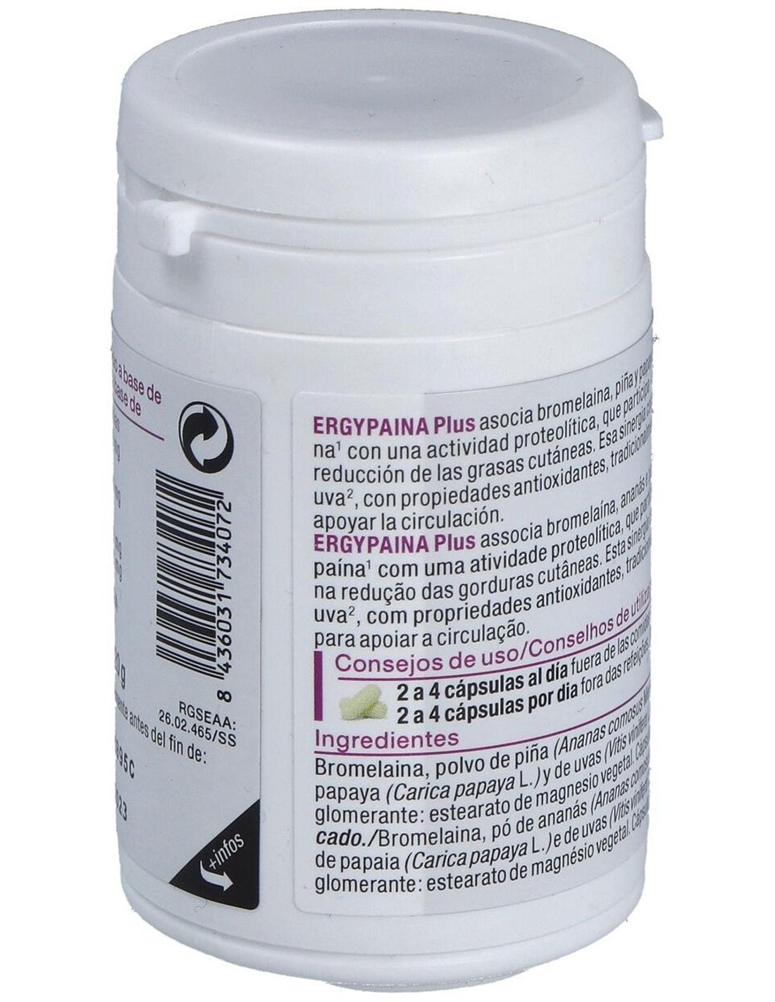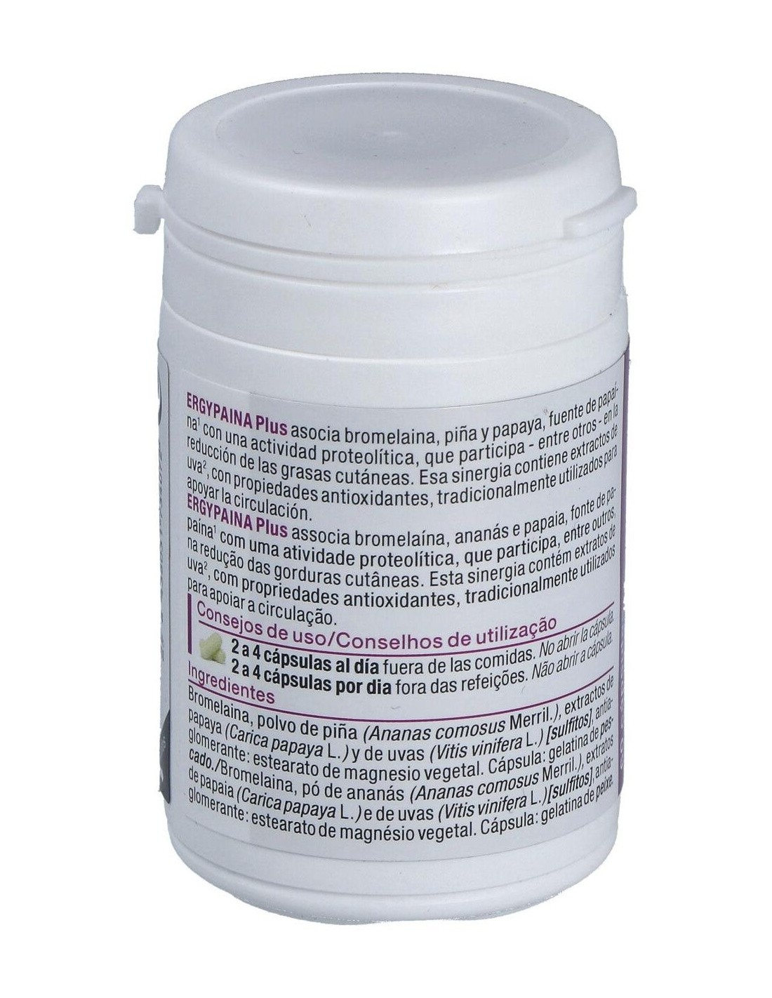 Elaborado con ingredientes de calidad, Ergypaina Plus presenta una composición que respeta los estándares de seguridad y eficacia. Su formato en cápsulas permite una absorción adecuada y una administración cómoda, ideal para quienes buscan complementar su alimentación habitual.