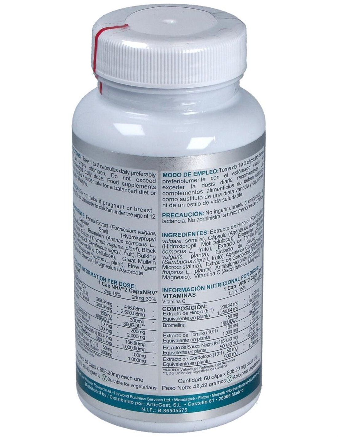 - Formulado con componentes que apoyan la función natural del organismo sin incluir sustancias estimulantes.