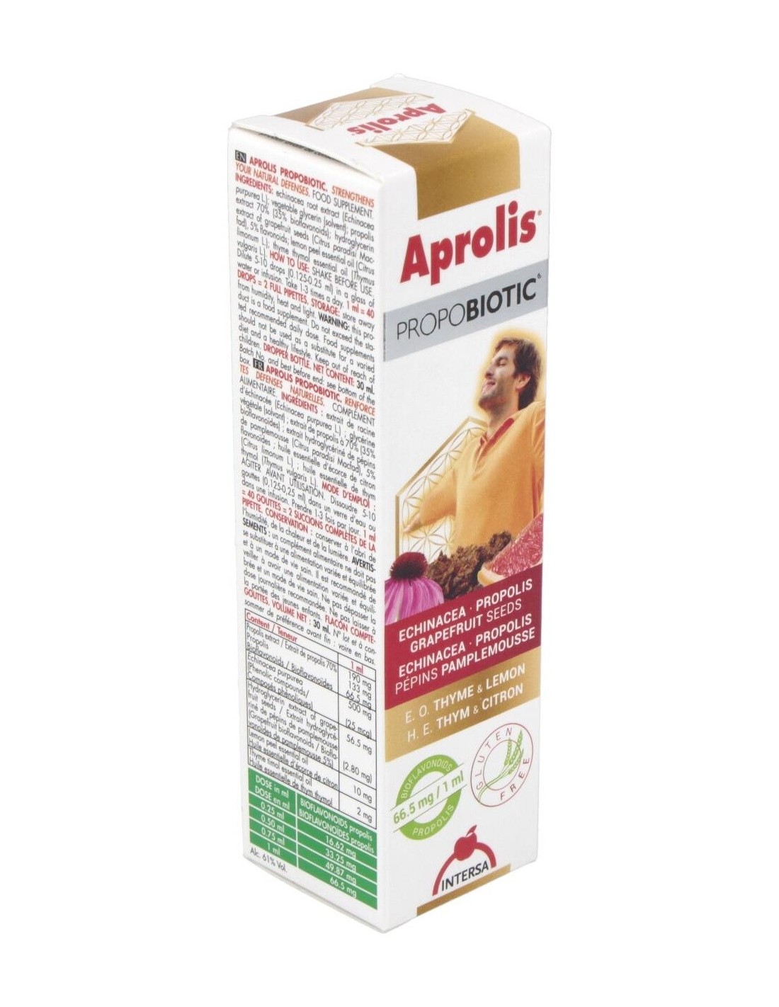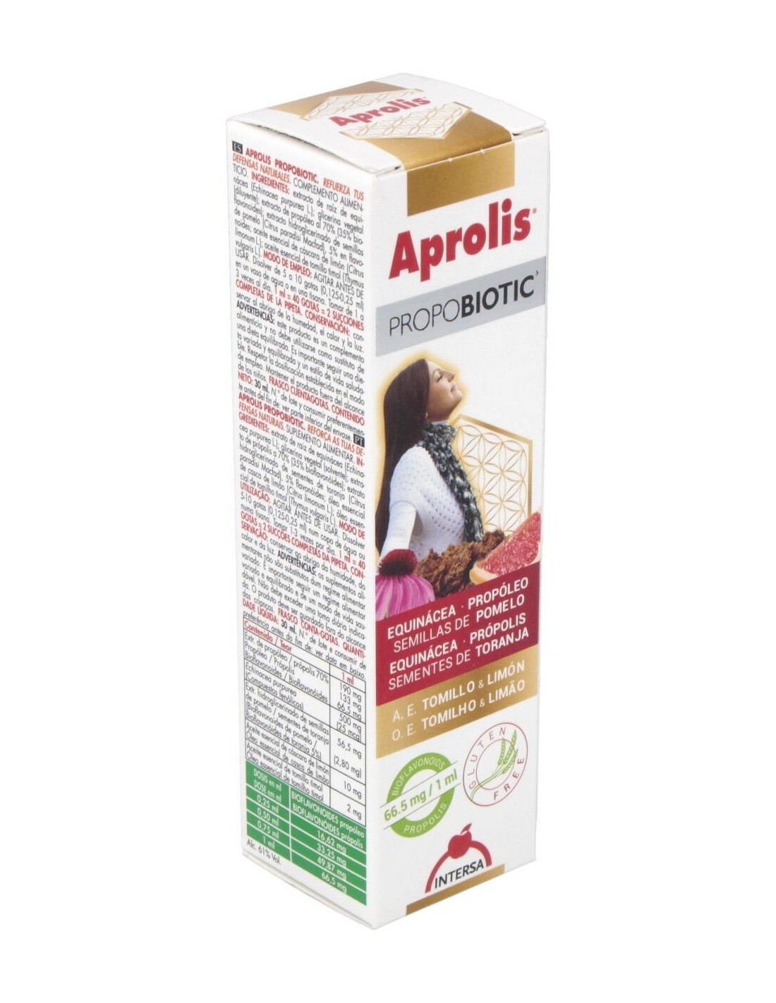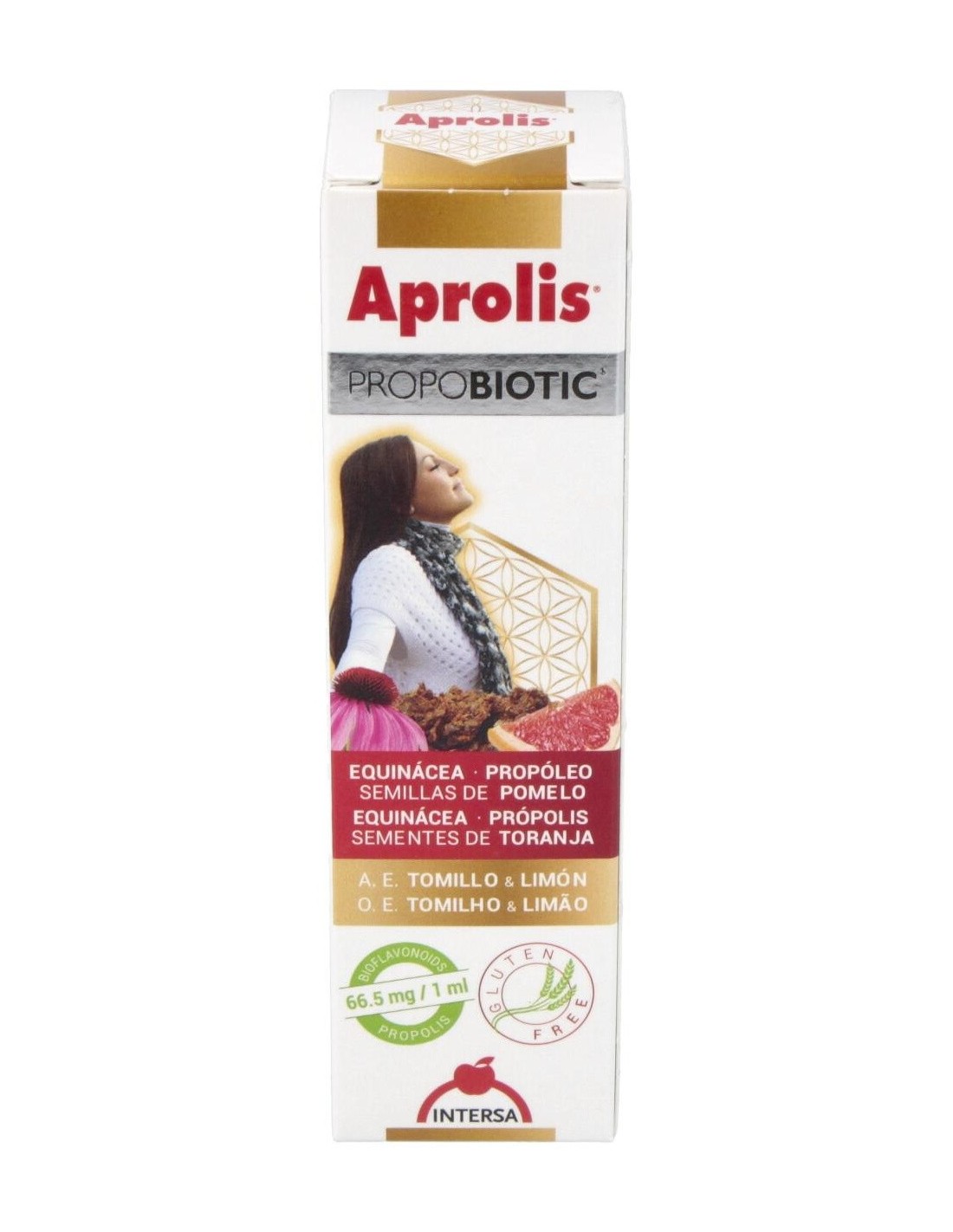 Este producto está compuesto por diferentes plantas con importante acción potenciadora de nuestro sistema inmune como son la equinácea, propóleo y semillas de pomelo además de aceites esenciales de tomillo y limón. Todos estos ingredientes conjugados tienen un efecto estimulante inmunitario y antibiótico natural (antibacteriano, antimicótico, antiviral y antiparasitario). Este beneficia también al terreno orgánico, puesto que contribuye a potenciar la depuración linfática y ayuda a equilibrar el pH de os fluidos fisiológicos, haciendo hostil el medio para el agente infeccioso. Ingredientes: