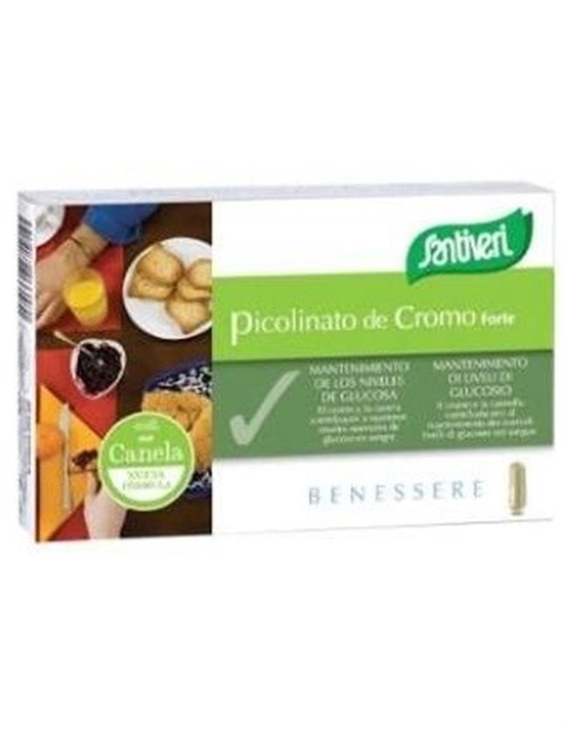 Complemento alimenticio a base de picolinato de cromo y vitaminas del grupo B. El cromo contribuye a mantener niveles normales de glucosa en sangre y al metabolismo normal de los hidratos de carbono, grasas y proteínas. Apto para veganos.