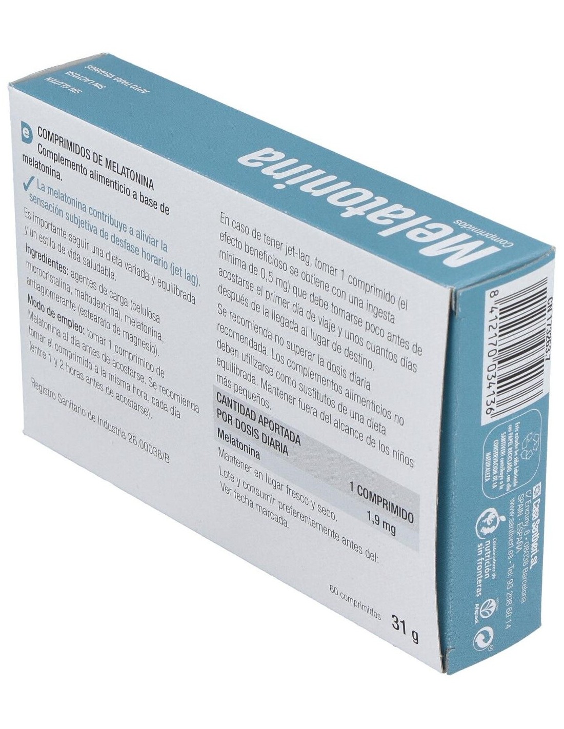 Santiveri Melatonina 1.9 Mg 60comp es un complemento alimenticio a base de melatonina que colabora a conciliar el sueño de forma natural.
