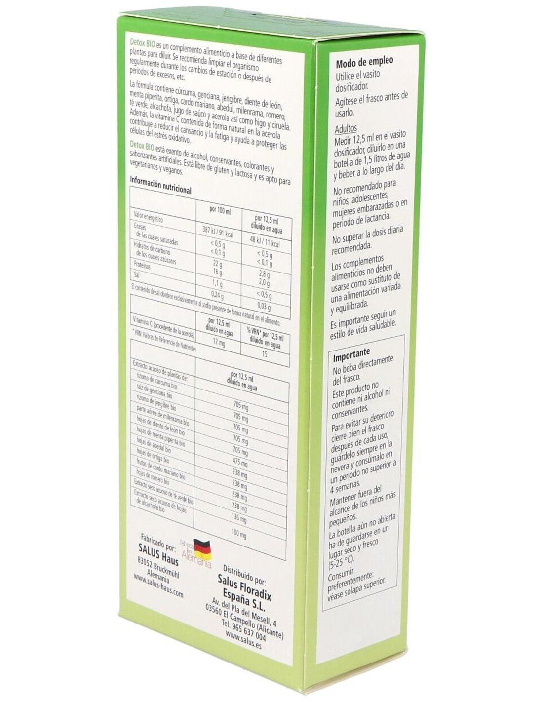 3. Antioxidante.La desintoxicación comienza en el hígado, el intestino y los riñones. Detox Bio Salus promueve el proceso de desintoxicación gracias a una acción de purificación a través del hígado y el intestino, así como a un efecto drenante de eliminación del exceso de líquido a través de los riñones. A estos beneficios se une una acción protectora celular contra el estrés oxidativo causado por la producción excesiva de radicales libres. Propiedades de los principios activos: