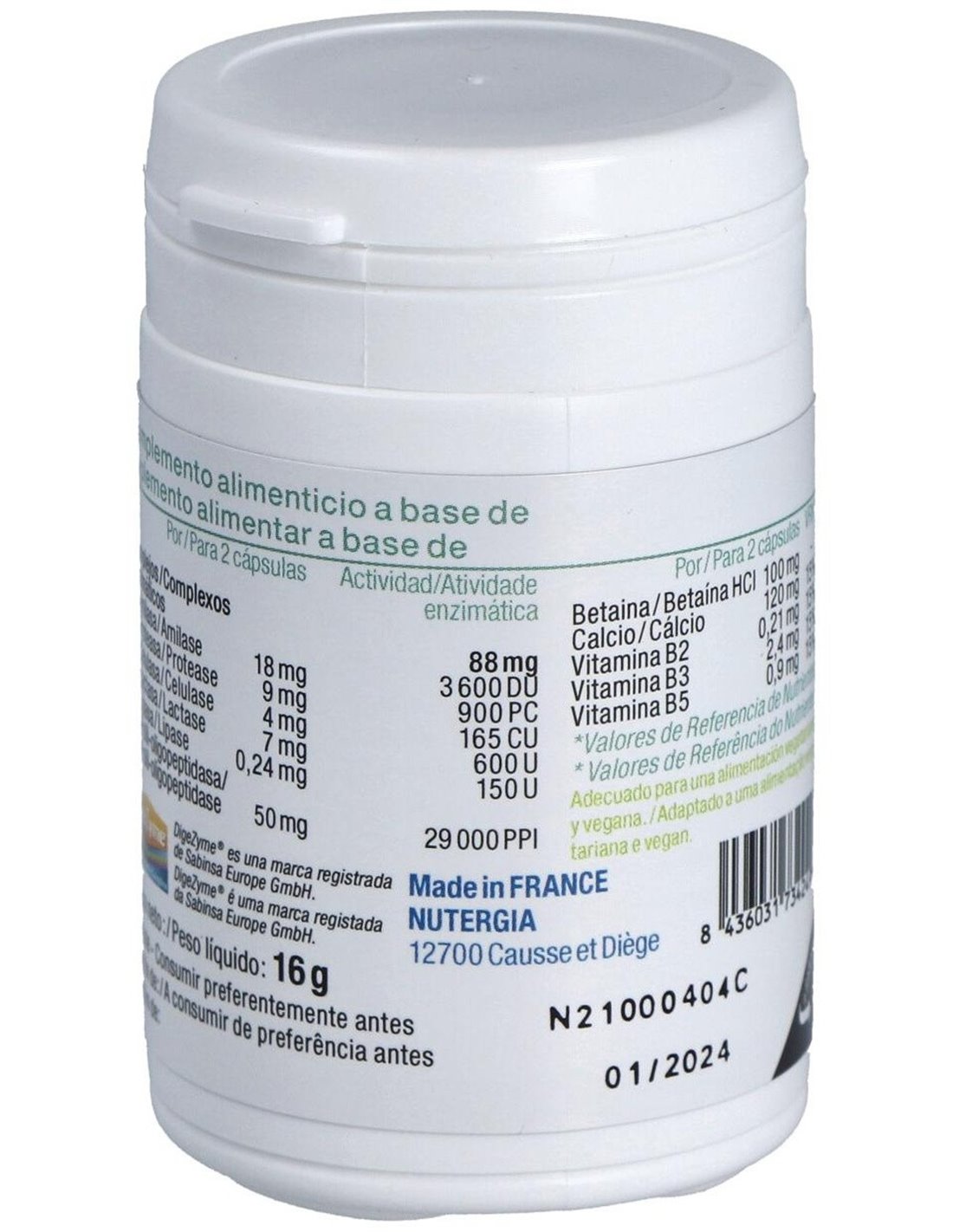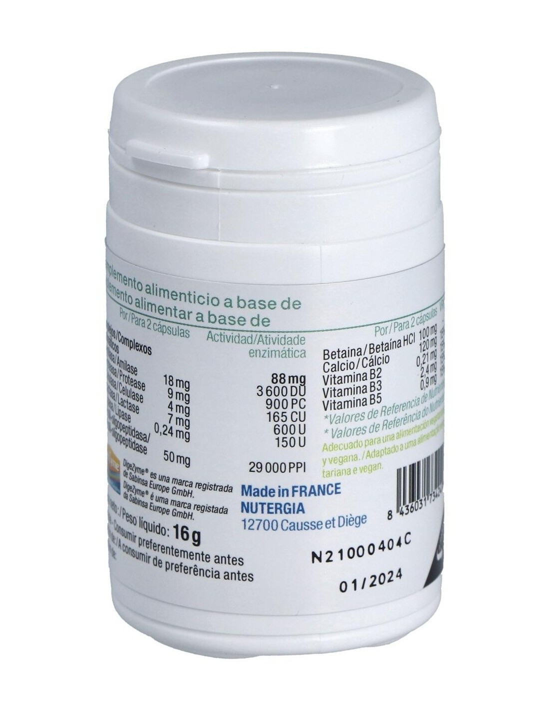 Sinergia exclusiva de enzimas y nutrientes para ayudar a reforzar los procesos digestivos y limitar las intolerancias. Se presenta en cápsulas vegetales gastrorresistentes DR Caps®, para garantizar la protección de las enzimas frente a la acidez del estómago y la liberación de las enzimas en su lugar de acción, es decir, en el intestino. Producto apto para vegetarianos y veganos. Reservado para adultos.