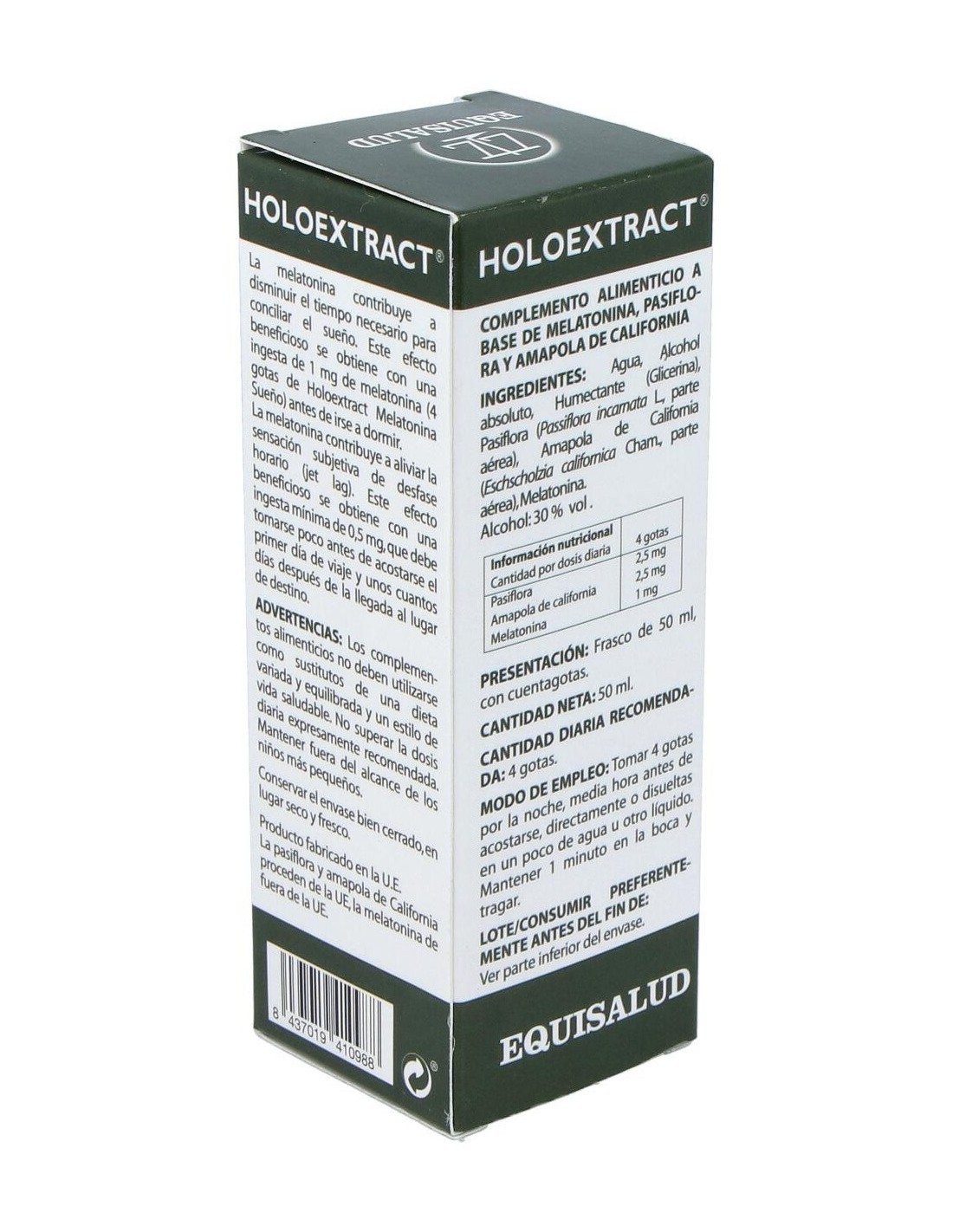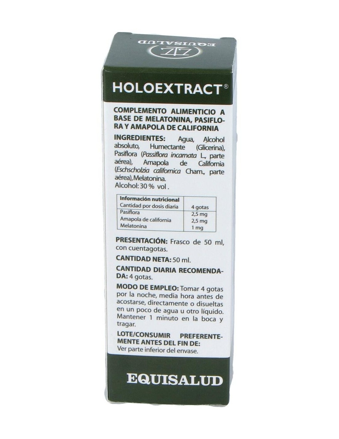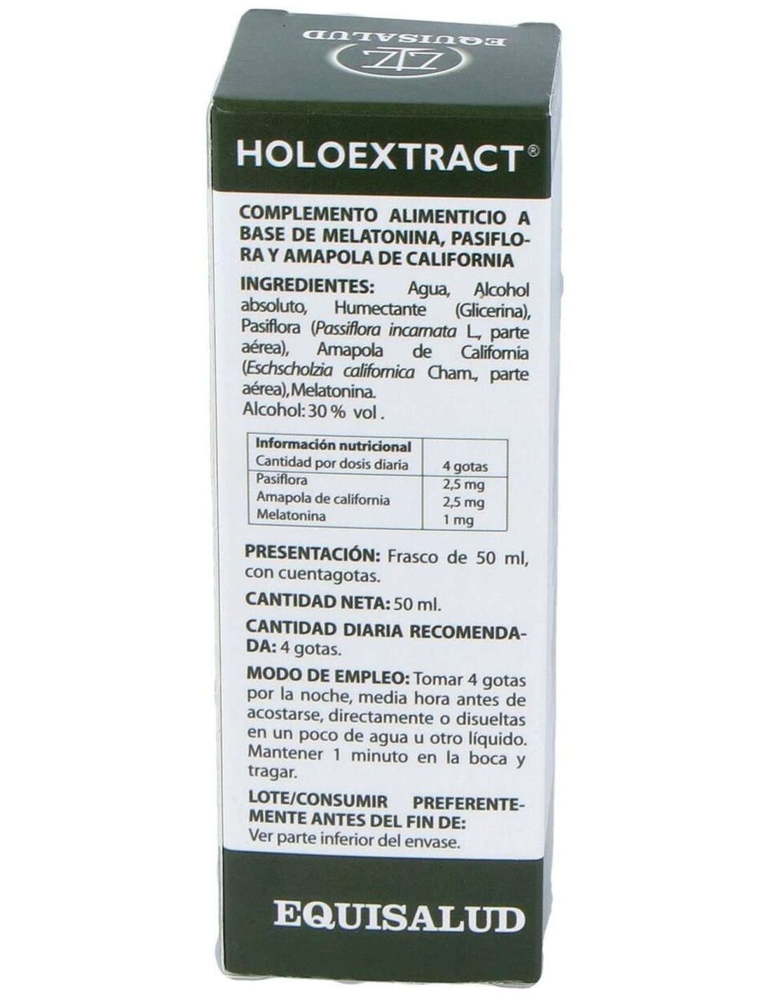 Melatonina*, 450 mg; pasiflora* (Passiflora incarnata L., partes aéreas, 1,5% flavonoides totales expresados como vitexina), 1.125 mg; amapola de California* (Eschscholzia californica Cham., partes aéreas, ---), 1.125 mg. Diluyentes: alcohol absoluto, glicerina y agua purificada. Alcohol: 30% vol.