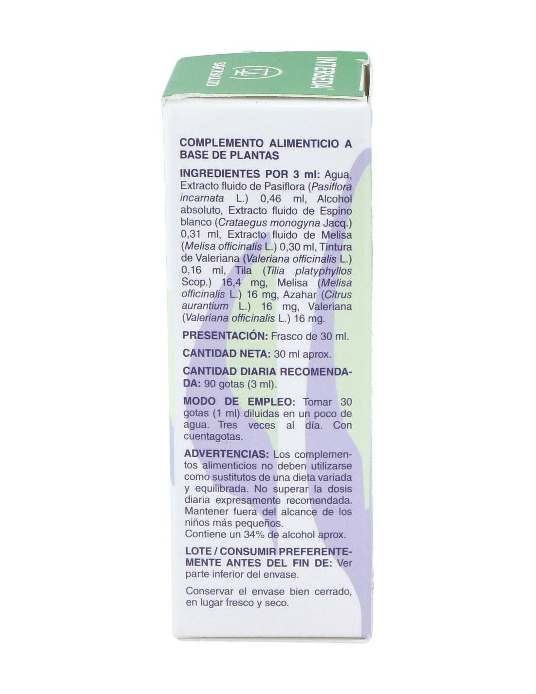 Suplemento con plantas como la melisa y la valeriana para apoyar el normal mantenimiento del sistema nervioso.