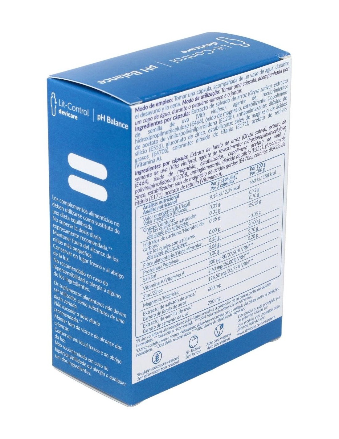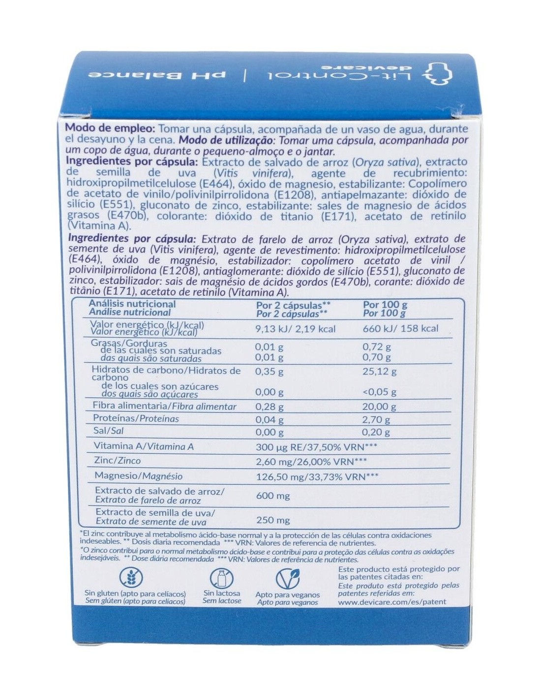 - Tomar una cápsula de Lit-Control pH BALANCE dos veces al día acompañadas de un vaso de agua durante el desayuno y la cena.