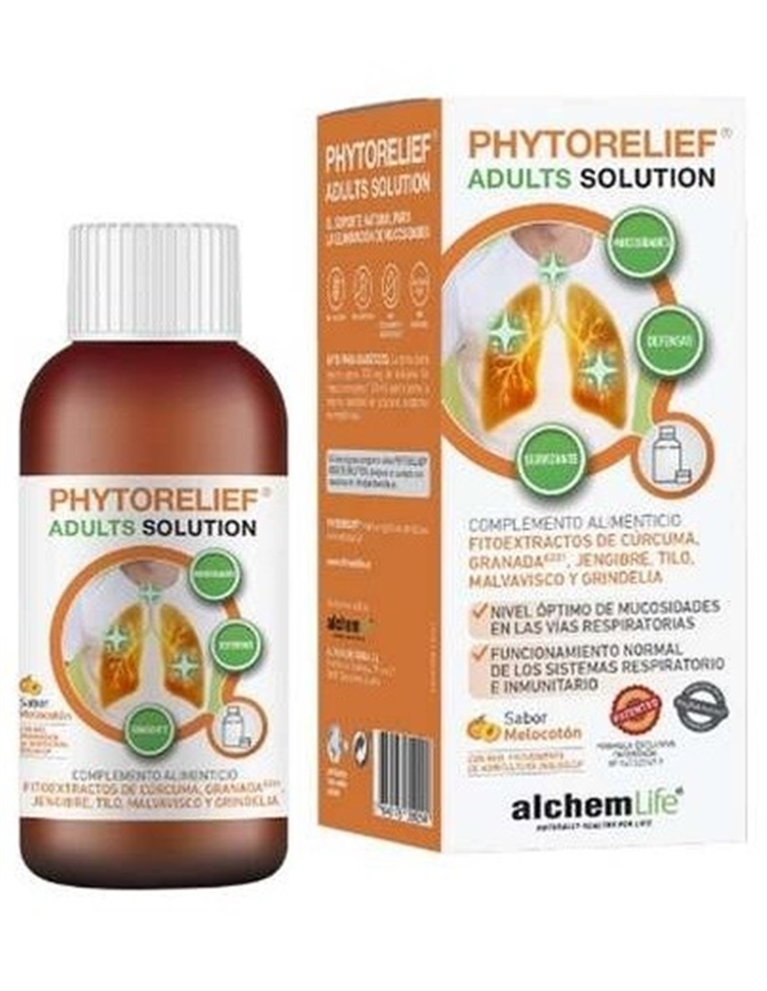 PHYTOADVANCEComplemento alimenticio con fitoextractos de Cúrcuma, Granada G331 , Jengibre, Tilo, Malvavisco y Grindelia, útiles para ayudar a la eliminación de mucosidades de forma natural. Sabor melocotón, apto para diabéticos.